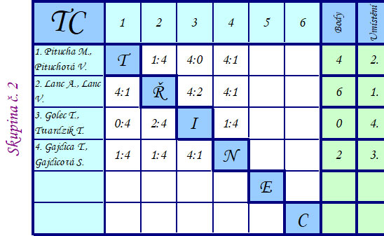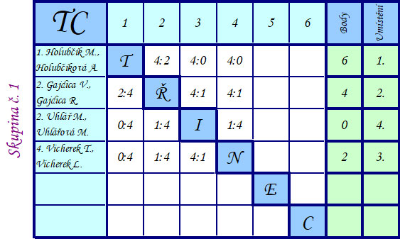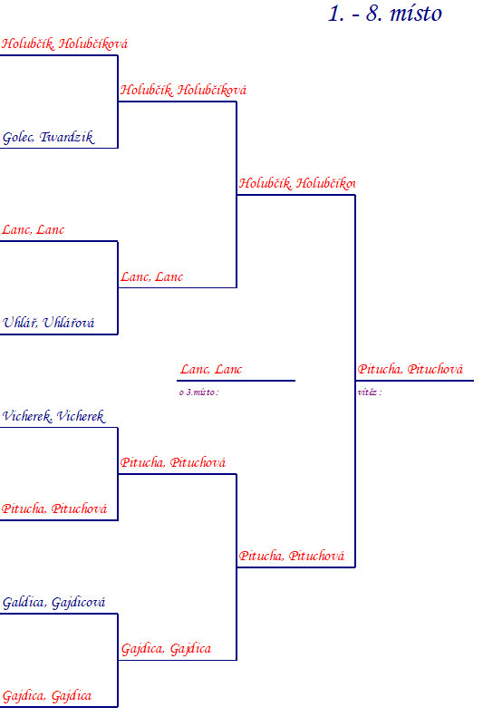 Turnaje se zúčastnilo 8 rodinných dvojic, kdy se všichni utkali ve skupině každý s každým na jednu sadu do šesti gamů a potom v pavouku o konečné vítězství.