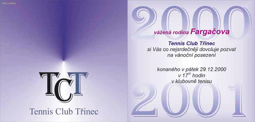 Vedení tenisového klubu TC Třinec se rozhodlo, že uskuteční první vánoční posezení členů klubu a to v tenisovém baru "Ten Bar" dne 29.12.2000.