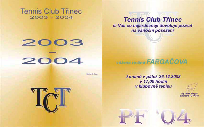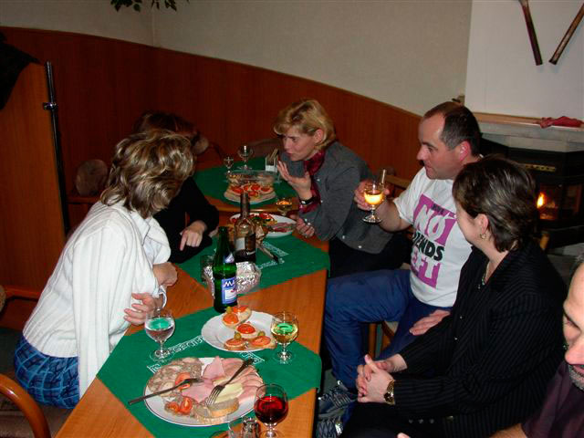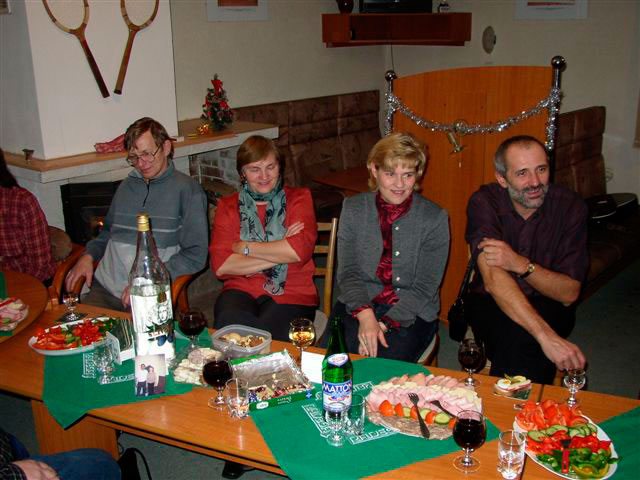 Letošní vánoční posezení se konalo dne 26.12.2003 v prostorách tenisového baru "Ten Bar". Pozvánku obdrželi členové klubu a nechyběli rovněž již pravidelní kytaristé Honza Šimonovič a Láďa Vrátný.