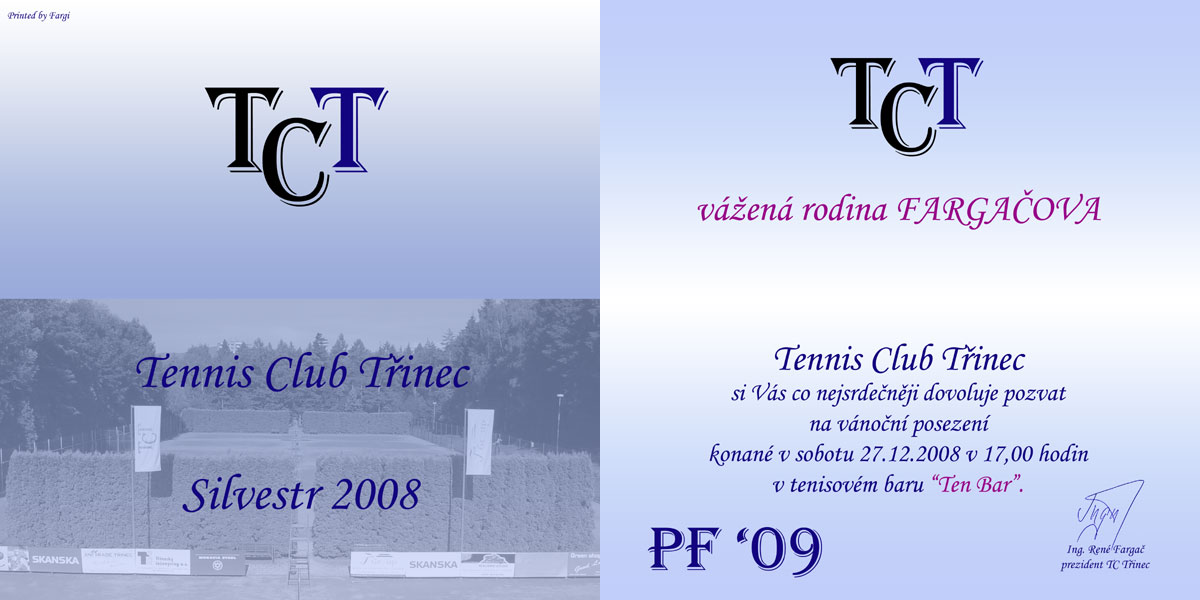 Dne 27.12.2008 pořádal Tennis Club Třinec pro své členy silvestrovské posezení v "Ten Baru". Sešlo se tentokrát méně členů, ale o to bylo veseleji.