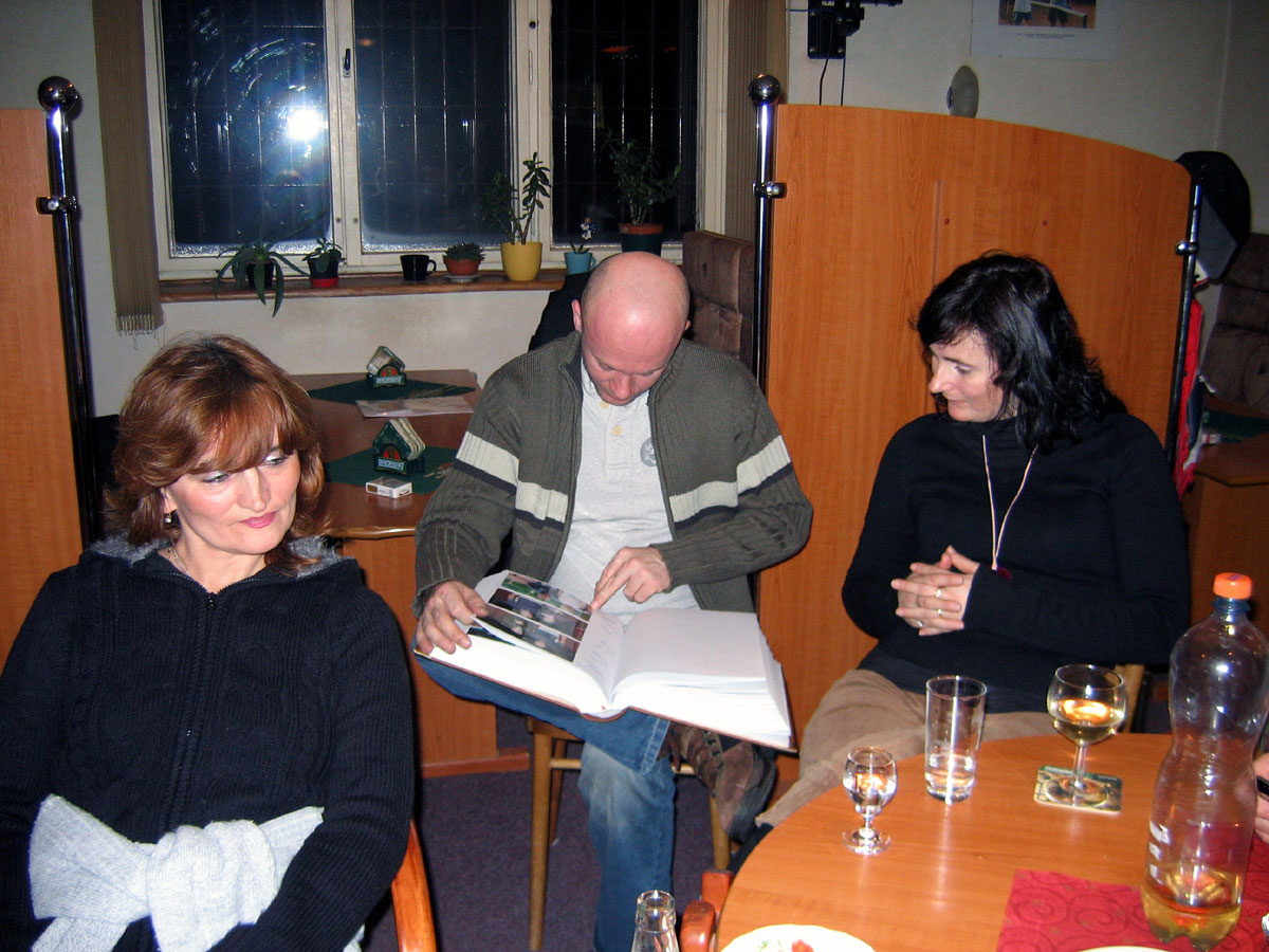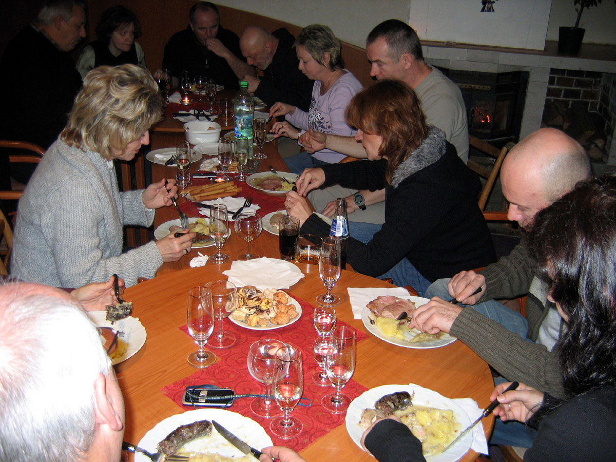 Posezení se zúčastnili Jana a René Fargačovi, Lidka a Aleš Dobeschovi, Slávka a Mirek Grimovi, Věrka a Honza Šimonovičovi, Štěpánka a Martin Pisárikovi a Jarka a Láďa Vrátní a Milan Ligocki, tentokrát bez Karin. Chyběli Urbaniecovi, Konderlovi, Štecovi, Raszkovi a Sikorovi.