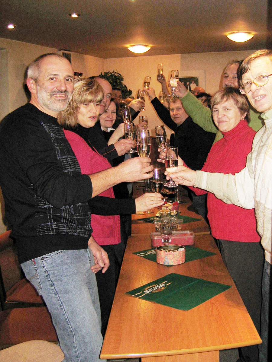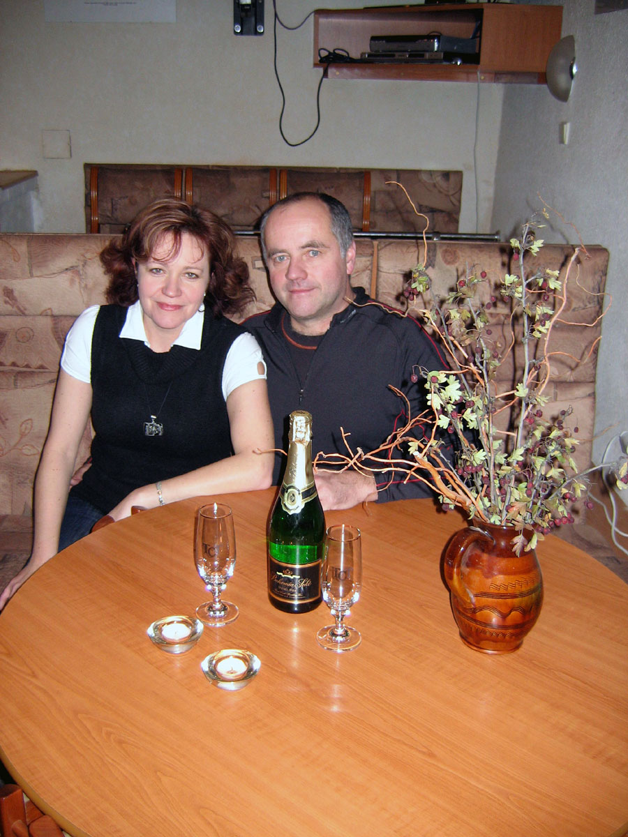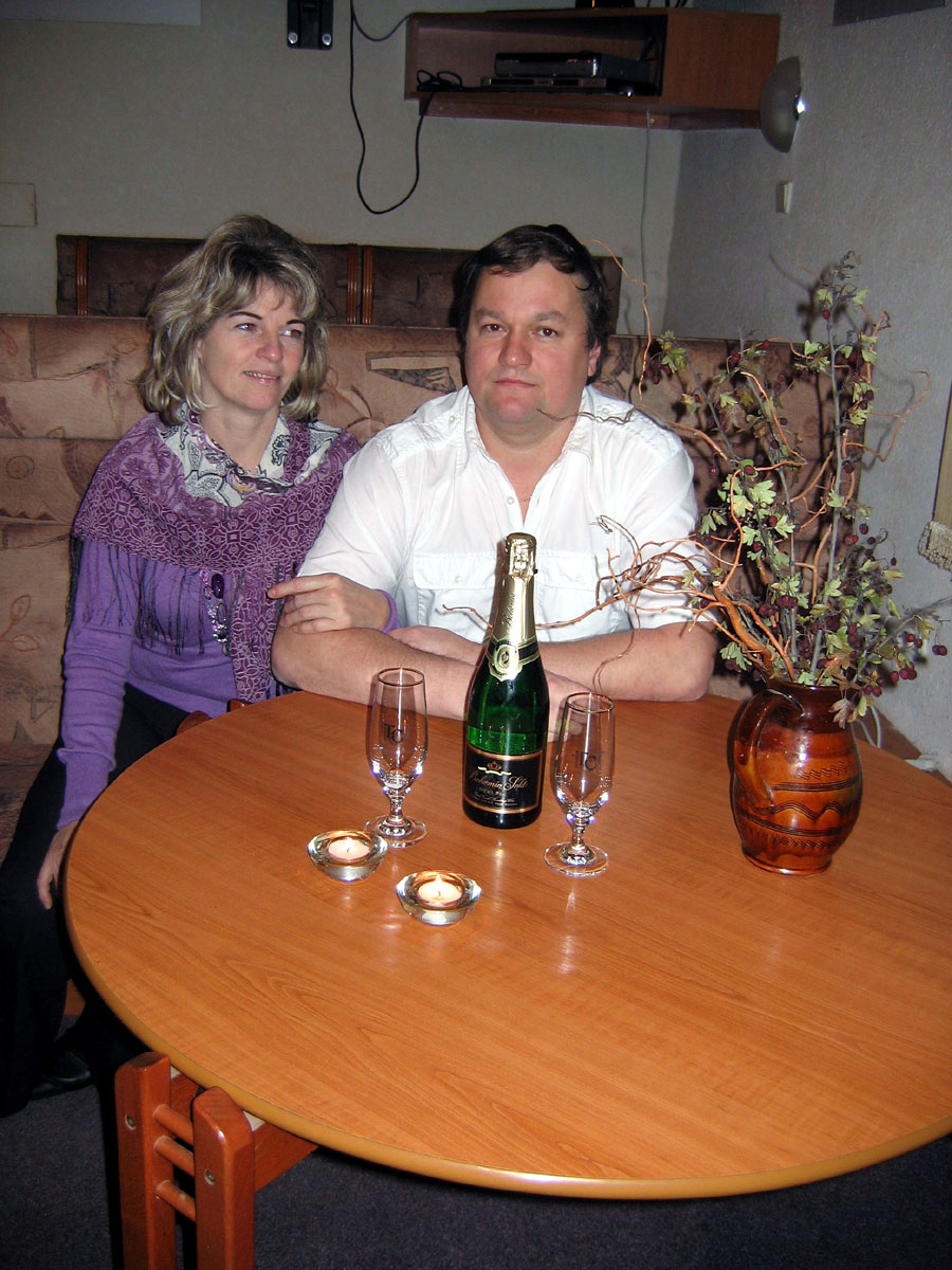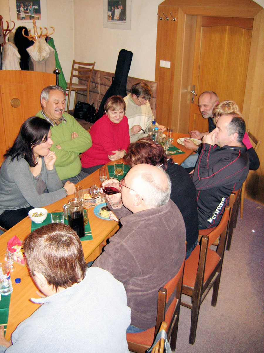 Posezení se zúčastnili Jana a René Fargačovi, Lidka a Aleš Dobeschovi, Slávka a Mirek Grimovi, Vilma a Pavel Sikorovi, Sylva a Karel Konderlovi, Věrka a Honza Šimonovičovi, Štěpánka a Martin Pisárikovi, Karin a Milan Ligočtí a Věrka a Jarda Štecovi. Nově se naší silvestrovské akce zúčastnili náš nový trenér Láďa Nemečkay a jeho partnerka Monika Prokopová. Chyběli jako již tradičně Urbaniecovi a Raszkovi. Za barem se o nás opět starala Iva Dembinná.