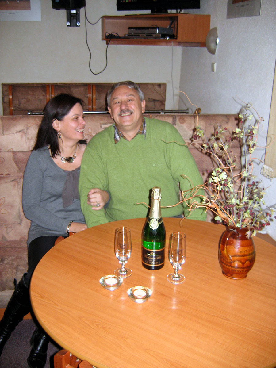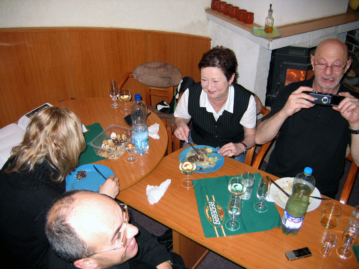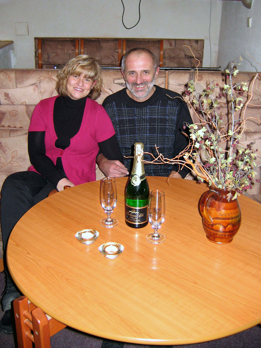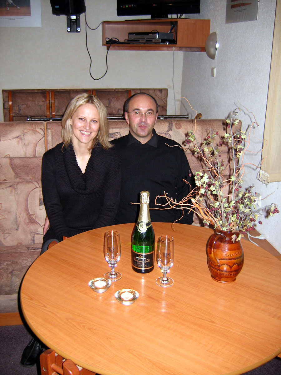Posezení se zúčastnili Jana a René Fargačovi, Lidka a Aleš Dobeschovi, Slávka a Mirek Grimovi, Vilma a Pavel Sikorovi, Sylva a Karel Konderlovi, Věrka a Honza Šimonovičovi, Štěpánka a Martin Pisárikovi, Karin a Milan Ligočtí a Věrka a Jarda Štecovi. Nově se naší silvestrovské akce zúčastnili náš nový trenér Láďa Nemečkay a jeho partnerka Monika Prokopová. Chyběli jako již tradičně Urbaniecovi a Raszkovi. Za barem se o nás opět starala Iva Dembinná.