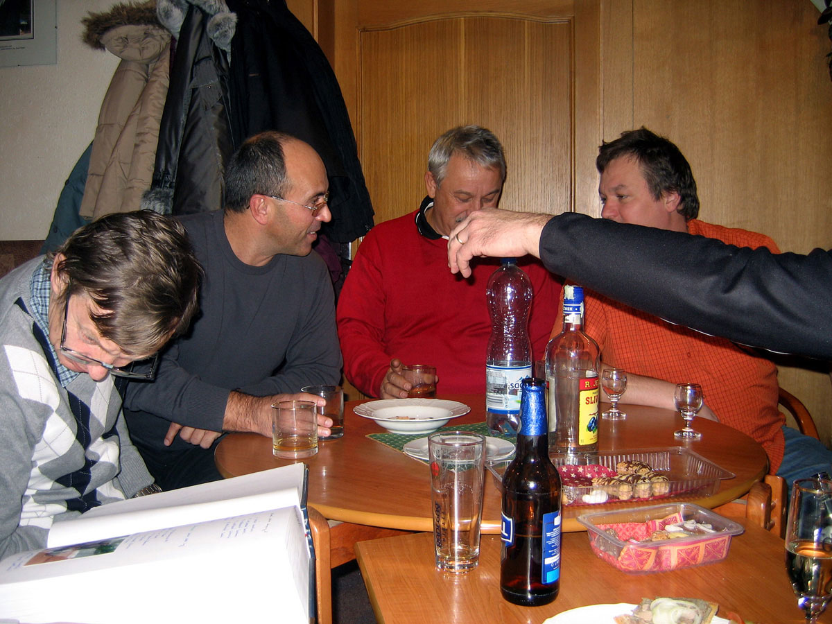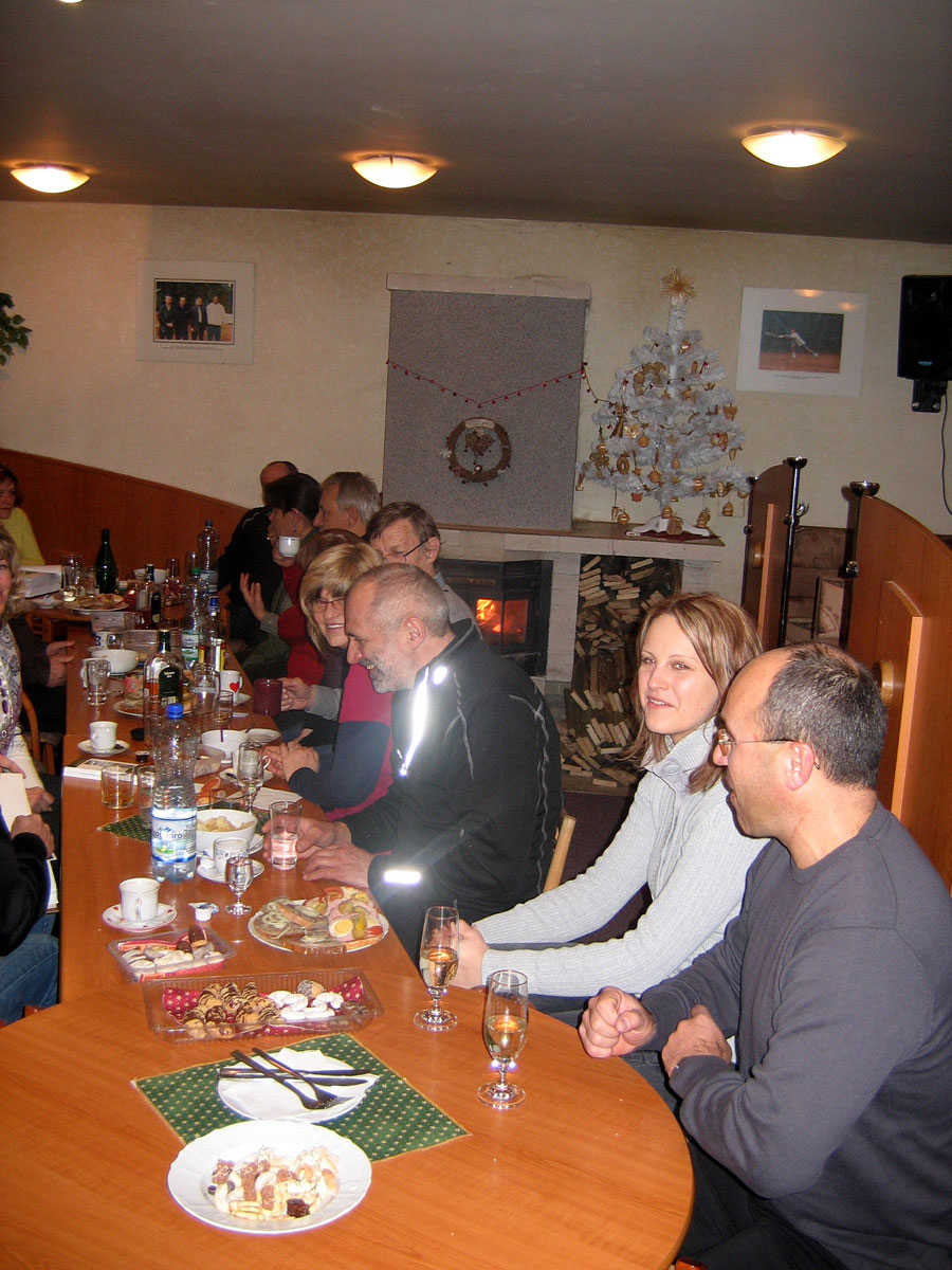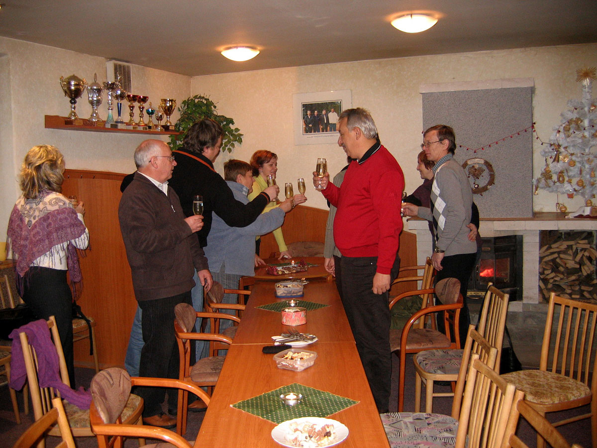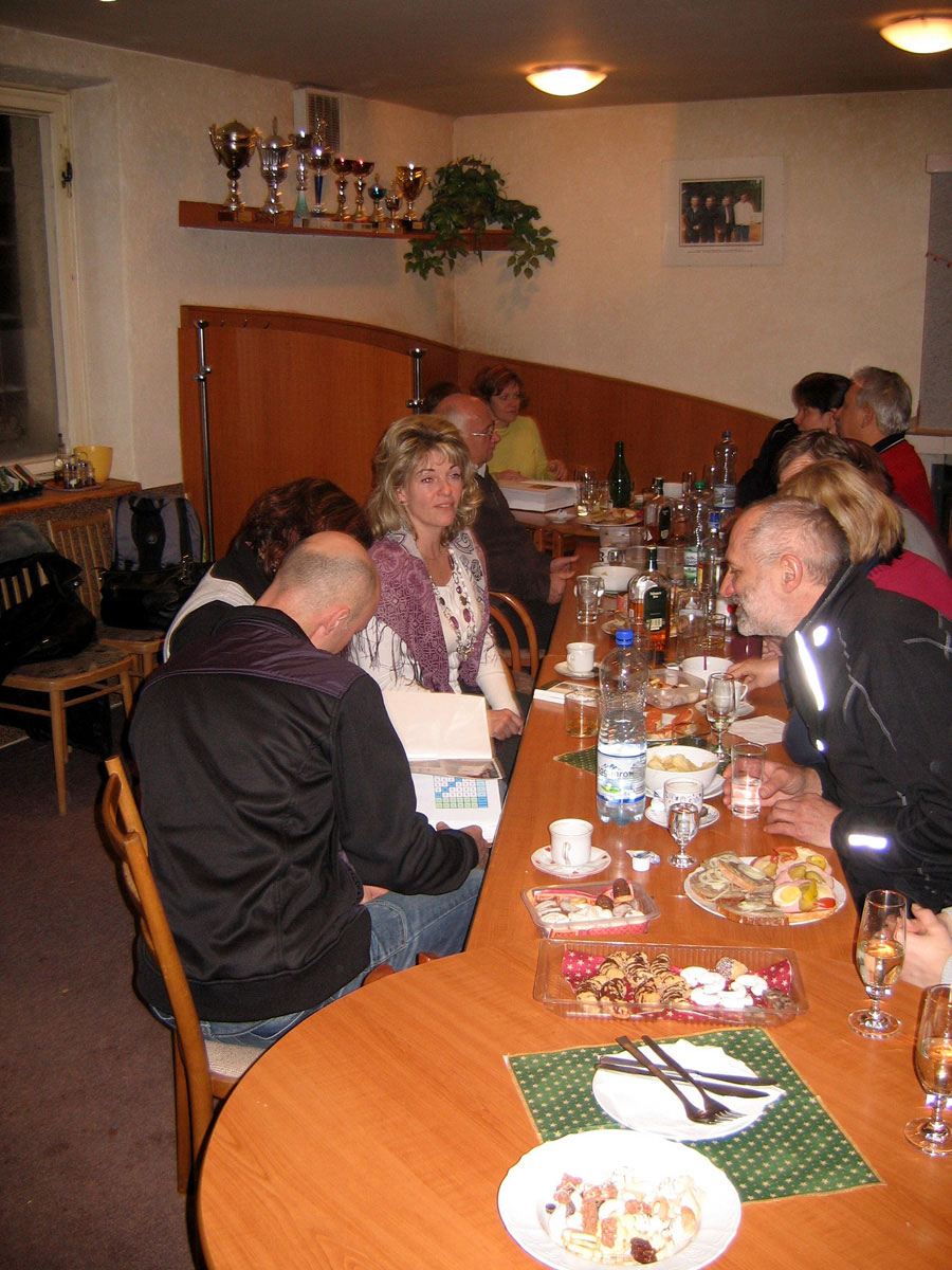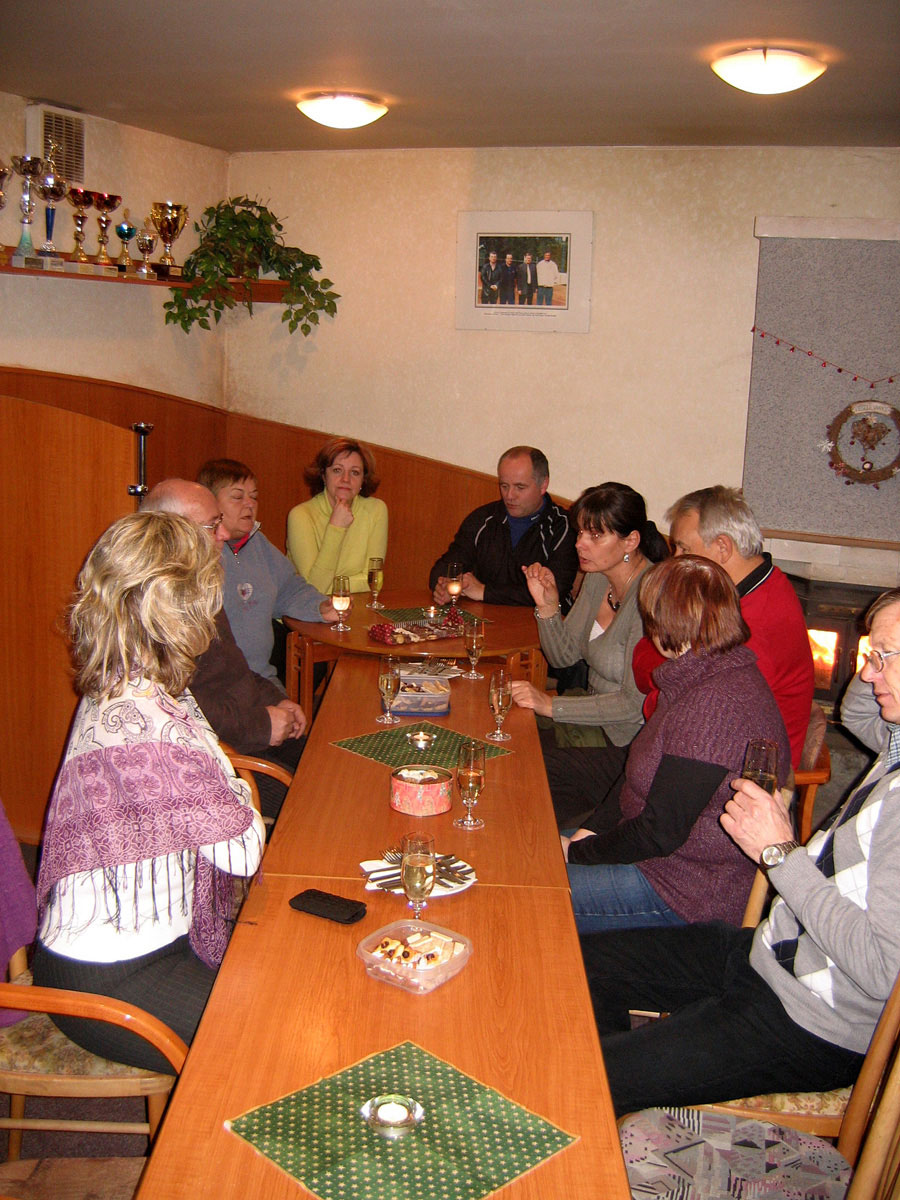 Posezení se zúčastnili Jana a René Fargačovi, Lidka a Aleš Dobeschovi, Slávka a Mirek Grimovi, Vilma a Pavel Sikorovi, Sylva a Karel Konderlovi, Štěpánka a Martin Pisárikovi, Karin a Milan Ligočtí a Láďa Nemečkay s jeho partnerkou Monikou Prokopovou. Za barem se o nás opět starala Iva Dembinná.