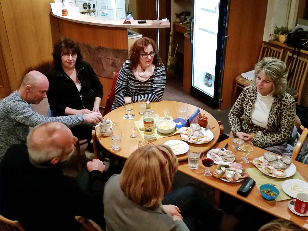 Posezení se zúčastnili kromě Karin a Milana Ligockých, kteří byli v tomto termínu v Tatrách, opět Jana a René Fargačovi, Aleš a Lidka Dobeschovi, Slávka a Mirek Grimovi, Vilma a Pavel Sikorovi, Sylva a Karel Konderlovi, Štěpánka a Martin Pisárikovi a také Iva Dembinná.