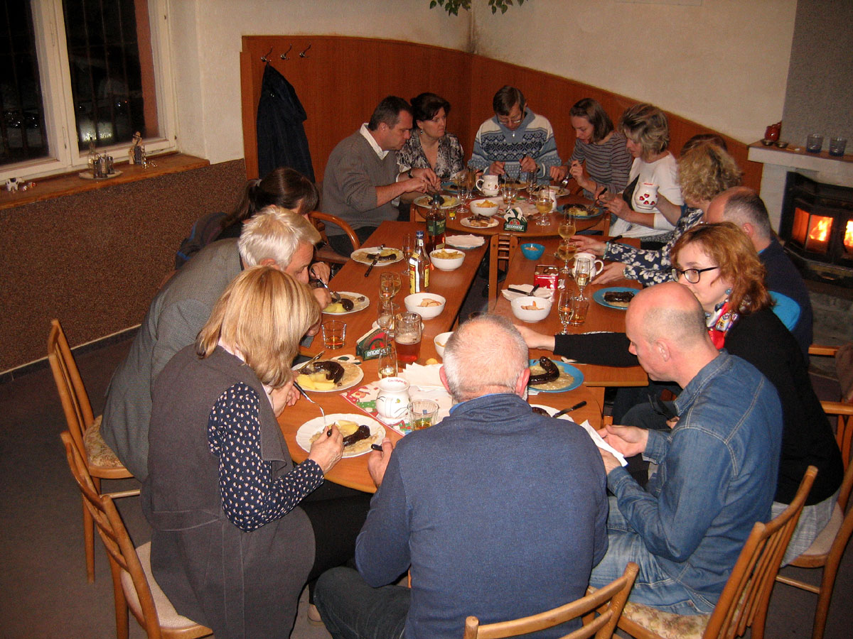 Posezení se zúčastnilo tentokrát 16 pozvaných. Jana a René Fargačovi, Aleš a Lidka Dobeschovi, Vilma a Pavel Sikorovi, Sylva a Karel Konderlovi, Karin a Milan Ligočtí, Renata a Zbyhněv Motykovi, Štěpánka a Martin Pisárikovi a Jarmila Sikorová. O obsluhu se stejně jako v minulých letech postarala Iva Dembinná.