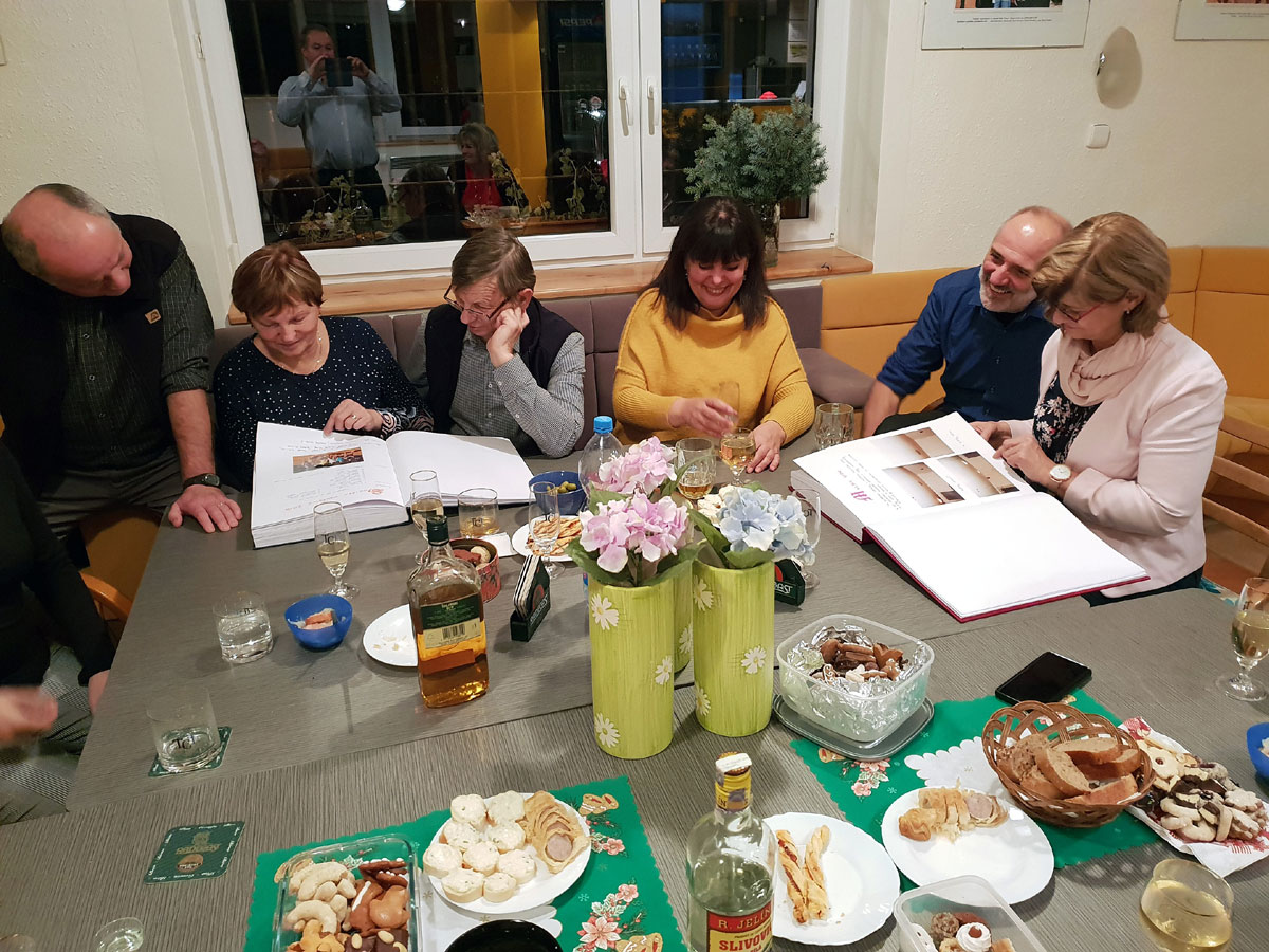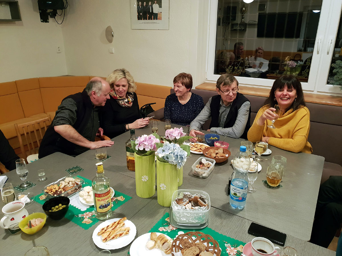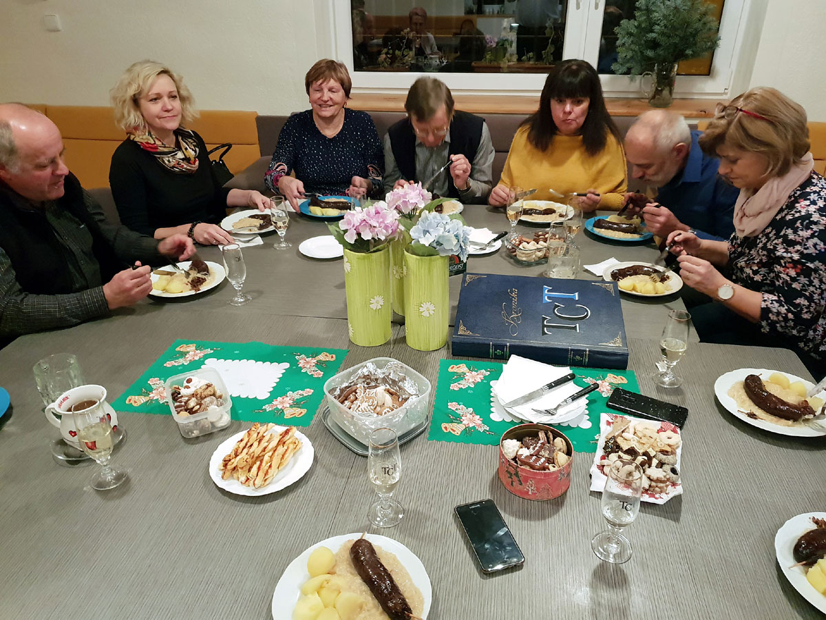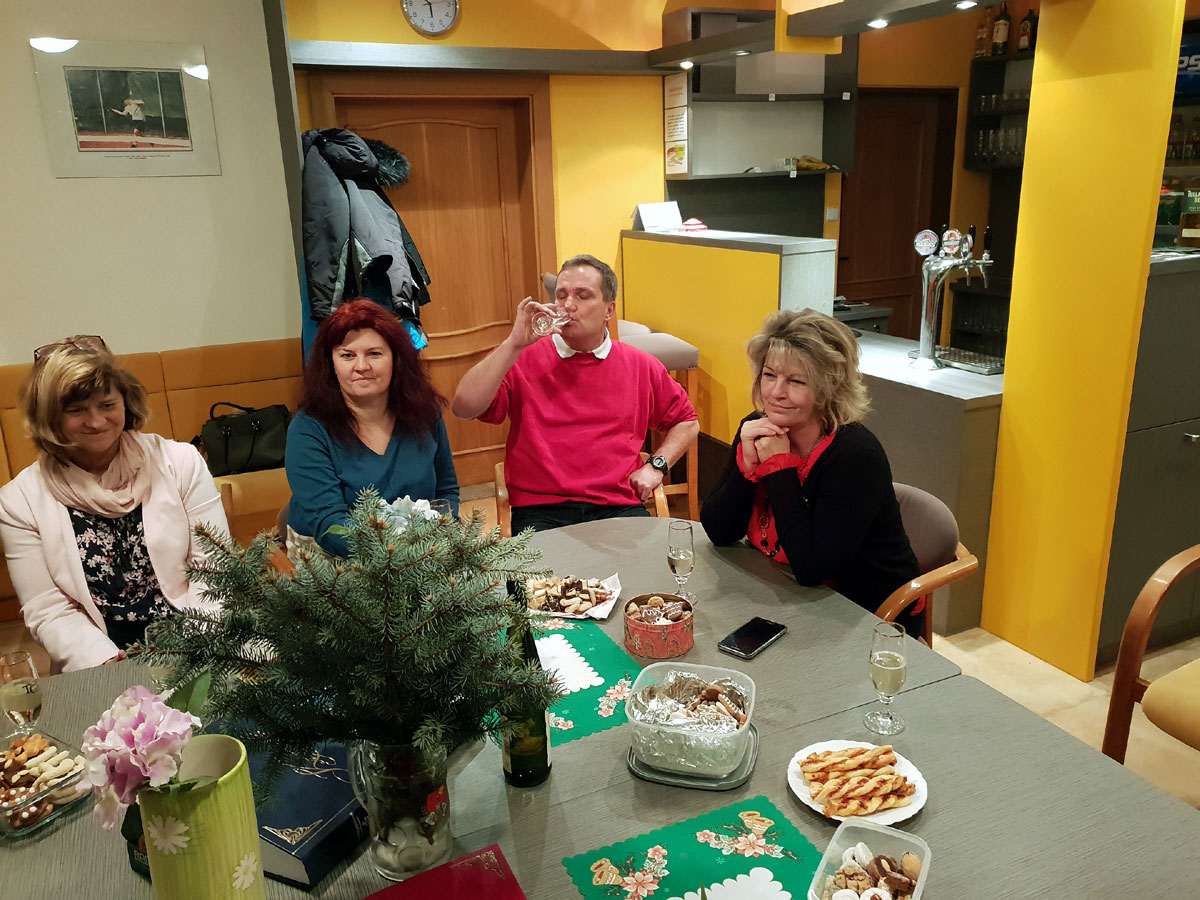 Posezení se zúčastnilo letos 12 pozvaných. Jana a René Fargačovi, Aleš a Lidka Dobeschovi, Vilma a Pavel Sikorovi, Sylva a Karel Konderlovi, Karin Ligocká tentokrát bez Milana, Renata a Zbyhněv Motykovi a také opět Denisa a Petr Klusovi. V baru se o nás starala Iva Dembinná.
