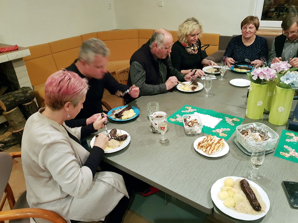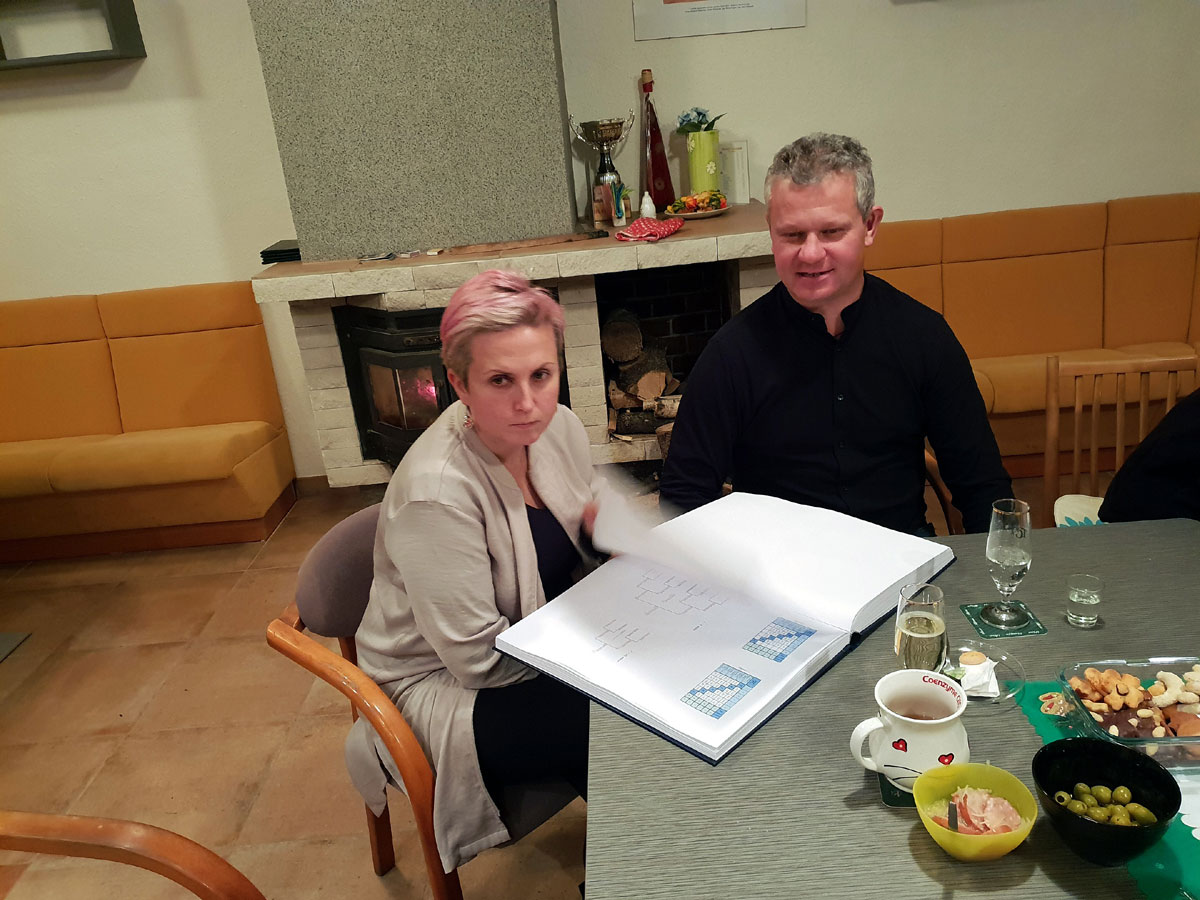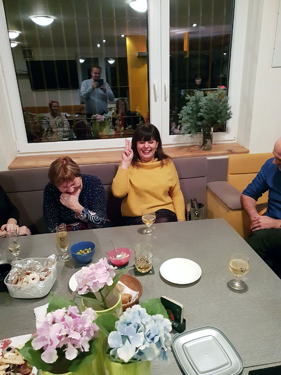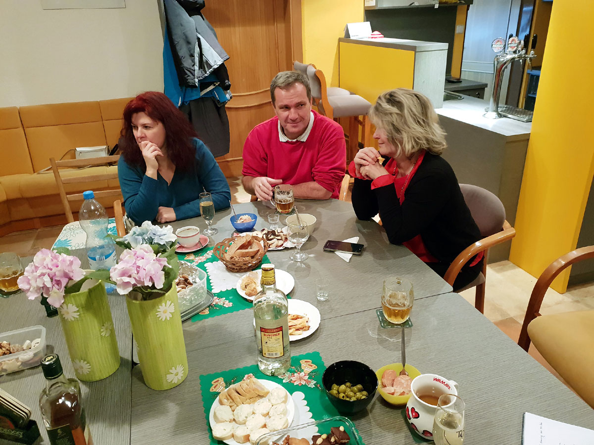 Posezení se zúčastnilo letos 12 pozvaných. Jana a René Fargačovi, Aleš a Lidka Dobeschovi, Vilma a Pavel Sikorovi, Sylva a Karel Konderlovi, Karin Ligocká tentokrát bez Milana, Renata a Zbyhněv Motykovi a také opět Denisa a Petr Klusovi. V baru se o nás starala Iva Dembinná.