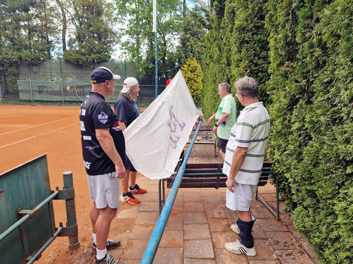 Za pěkného počasí proběhlo na centrálním dvorci přátelské utkání ve čtyřhře se sponzory klubu, poté následovalo vztyčení klubových vlajek a tradiční přípitek šampaňským.