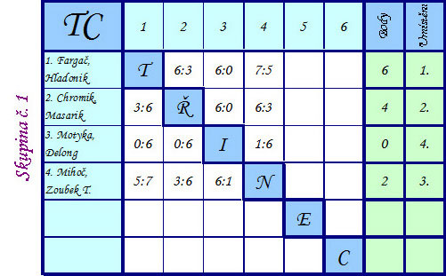 Tabulky a pavouky turnaje |