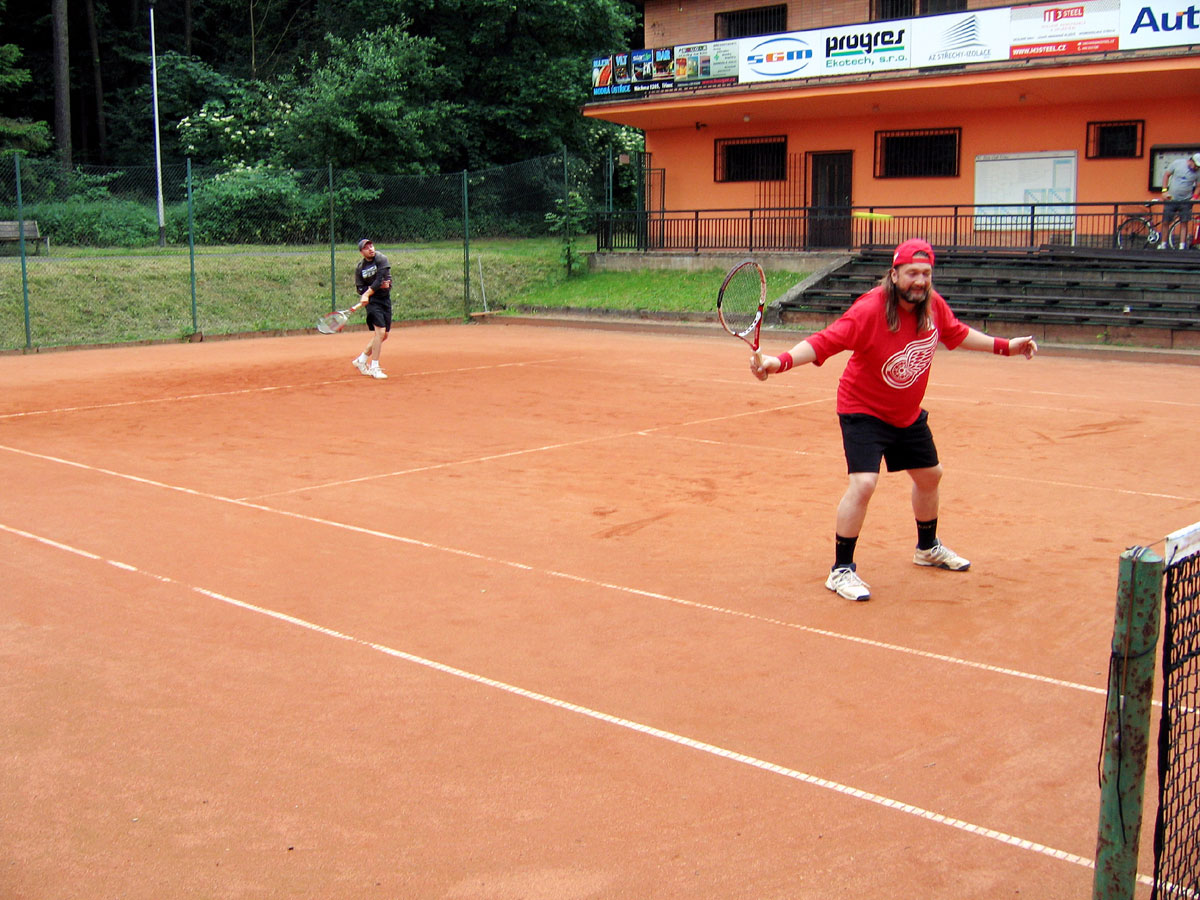 13.ročník tenisového turnaje bývalých hokejistů Old Boys Cup začal letos v sobotu 10.června za pěkného počasí. Po dvou hodinách přišla ale průtrž mračen, která zalila celý areál.