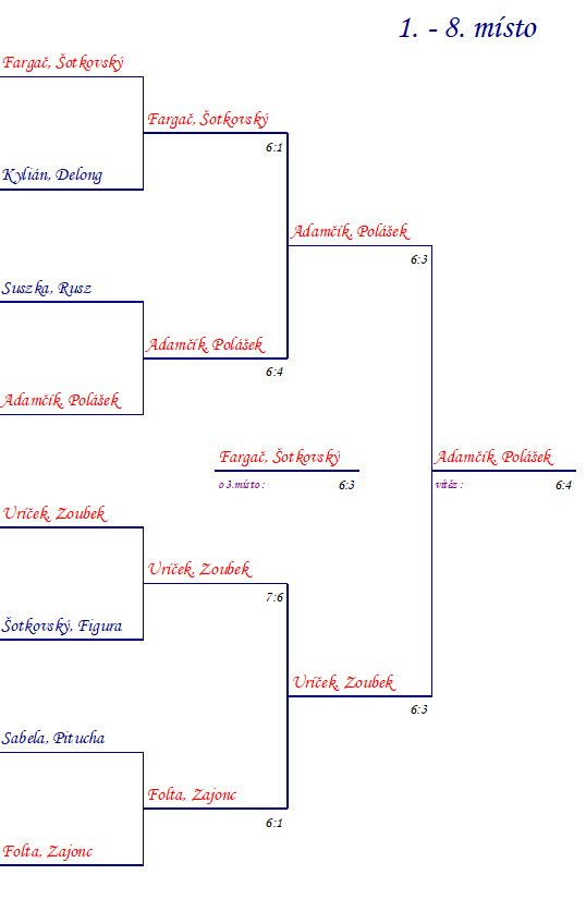 Turnaje se letos zúčastnilo přesně 20 hráčů. Hrálo se novým systémem, kdy se nejdříve odehrála 4 kola a každé s jiným partnerem. 16 hráčů si pak vylosovalo nového partnera, se kterým již turnaj dohráli a čtyři hráči hrali soutěž útěchy. Všechny zápasy se hrály na jeden set.