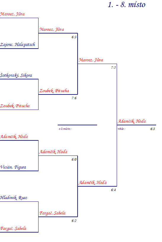 Turnaje se letos zúčastnilo přesně 16 hráčů. Hrálo se novým systémem, kdy se nejdříve odehrála 4 kola a každé s jiným partnerem. 16 hráčů si pak vylosovalo nového partnera, se kterým již turnaj dohráli a čtyři hráči hráli soutěž útěchy. Všechny zápasy se hrály na jeden set.