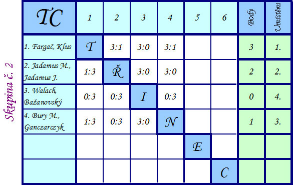 Skupiny a pavouky turnaje |