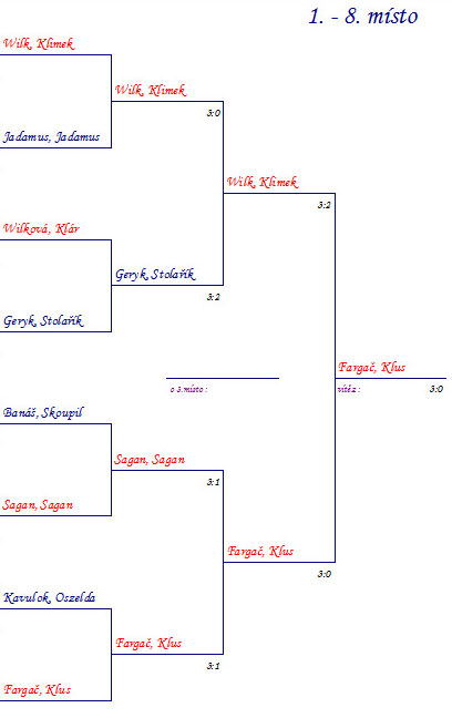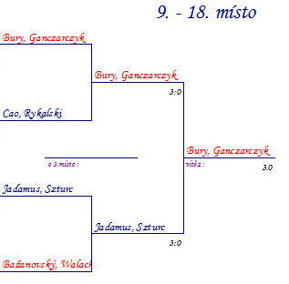 Hrálo se na tři vítězné tie breaky do deseti bodů jako za starých časů, to vše ve třech skupinách po čtyřech, z nichž se postupovalo do finálového pavouka a rovněž do útěchy.