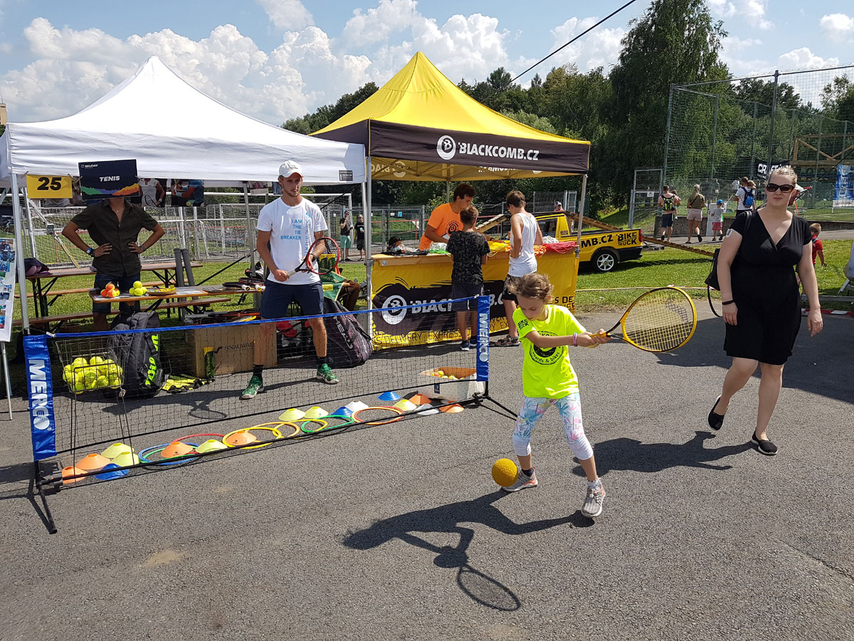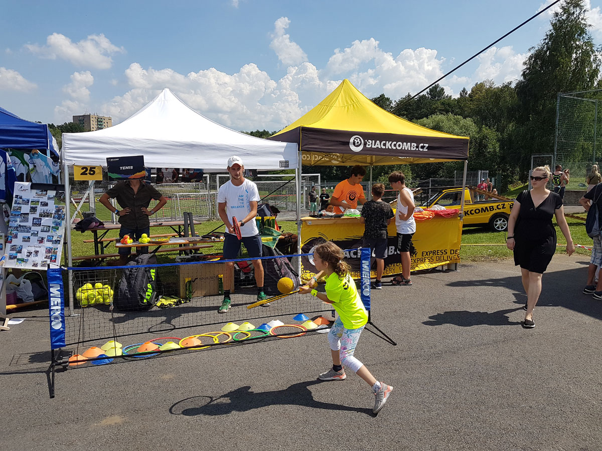Organizace prezentace tenisové činnosti u sportovního stánku se ujal a celý den předváděl Radim Cienciala. Se svým synem Honzou ukázali zájemcům některé tenisové činnosti a některé děti také nechali zkusit tenisové údery.