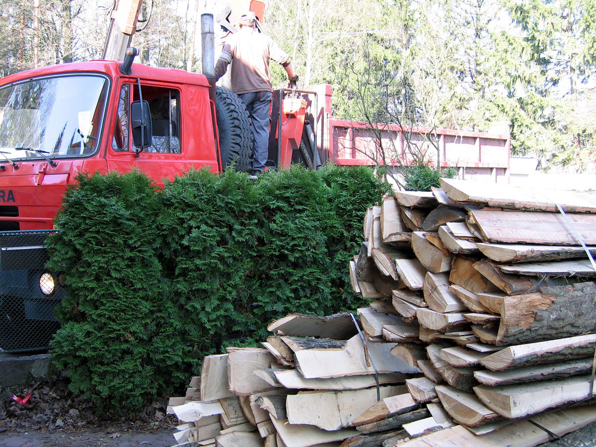 Do našeho nově zrekonstreuovaného krbu jsme si přivezli auto dřeva. Už stačí jen nařezat. |