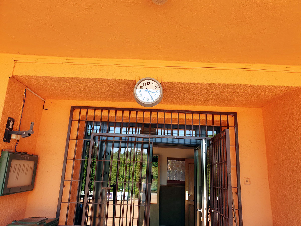 | Hodiny nad vchodem |
