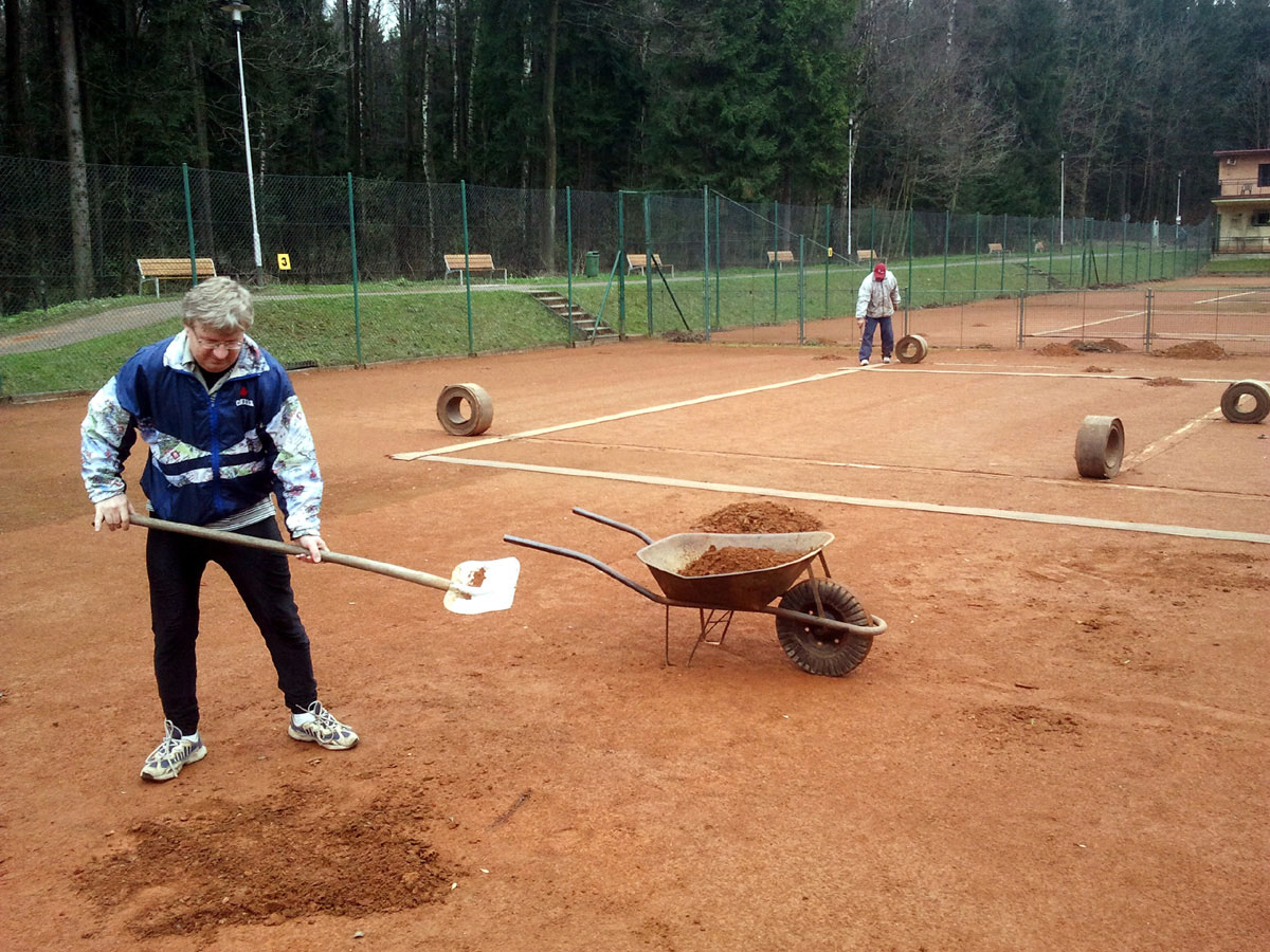 A zase jedna velká akce s antukou. Letos jsme objednali 15 tun sypané antuky a 5 tun antuky pytlované. Dovoz z Kostelce zajistili tentotkrát dodavatlé obřím kamiónem. Při složení antuky nám letos nezjištně pomohly firmy T-DEX, s.r.o. a Mrózek, a.s. Oběma moc děkujeme. Dvorce si už upravíme sami a co nejdříve. Sezóna začíná. |