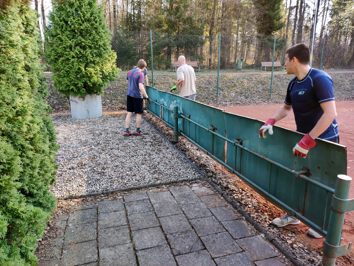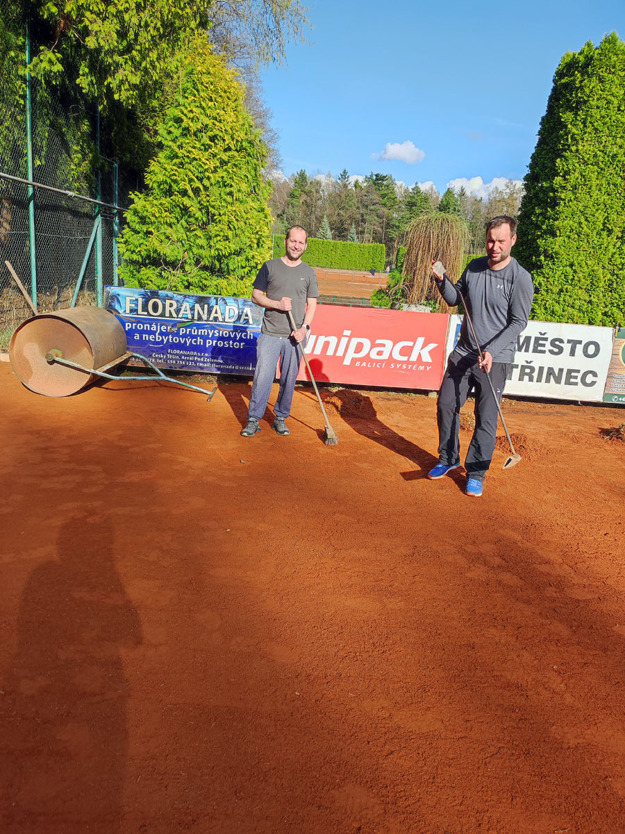 Letošní brigády začaly dovozem pytlované antuky společnosti DEK Stavebniny, a.s. Poté již klasika. Shrnutí staré antuky, srovnání, nahození nové antuky a zválcování. V tomto týdnu již začínáme hrát. |
