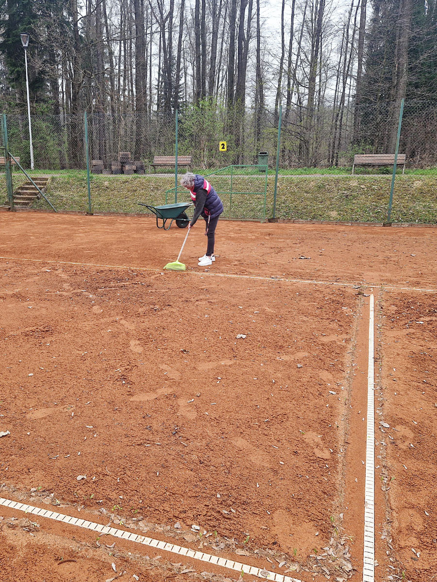 Iva Dembinná při úpravě dvorců |