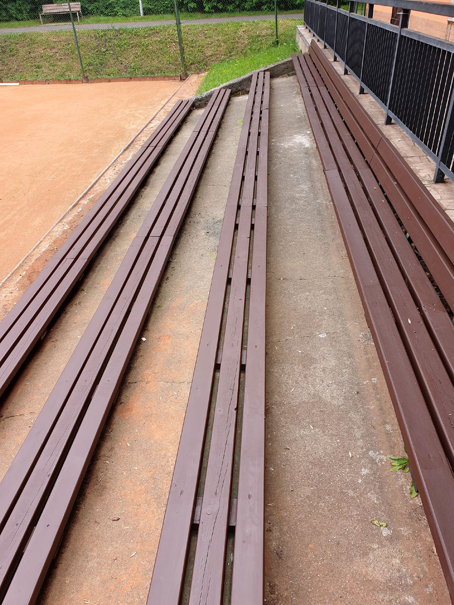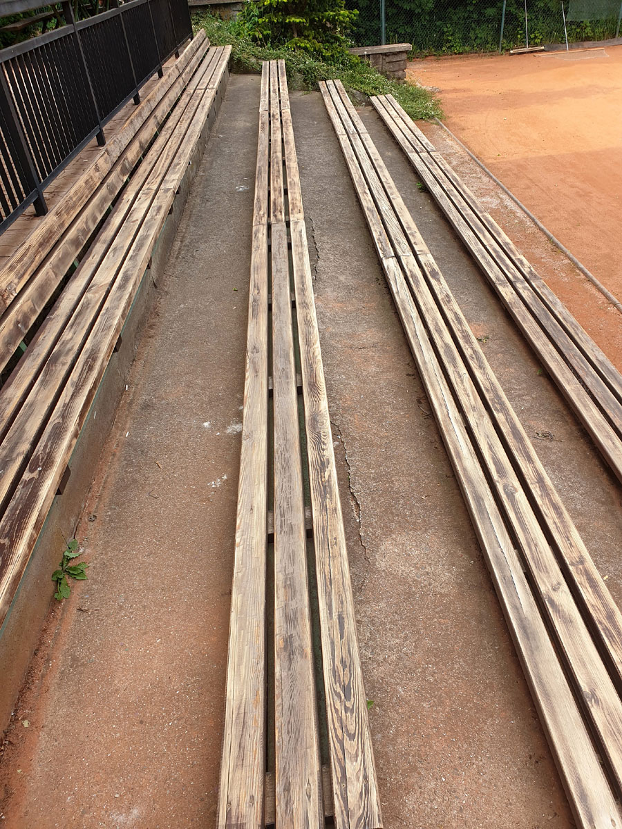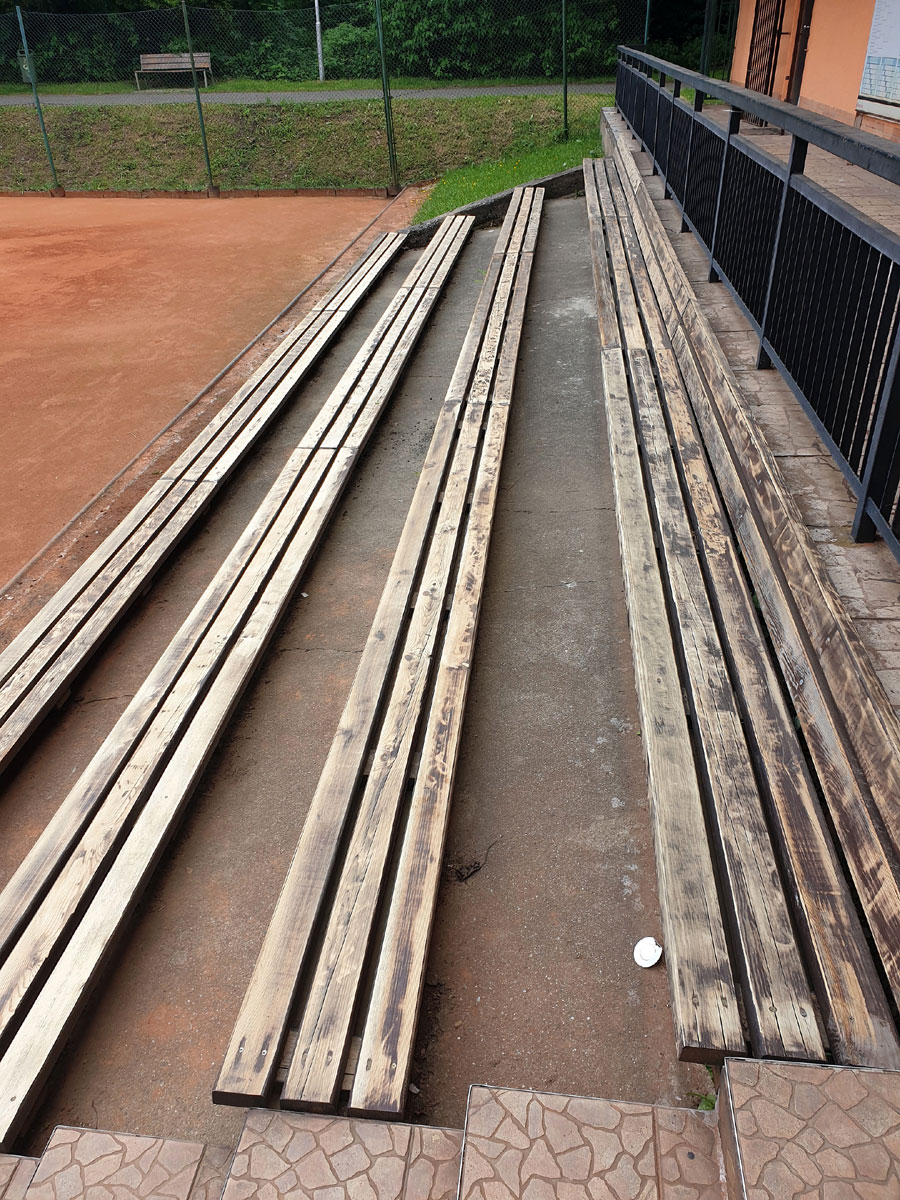 Po dvou letech boje se smůlou na nových lavičkách na centrálním dvorci se podařilo boj vyhrát. Smůla byla odstraněna a lavičky byly natřeny dvěma vrstvami barvy. Snad je tím problém definitivně vyřešen. |