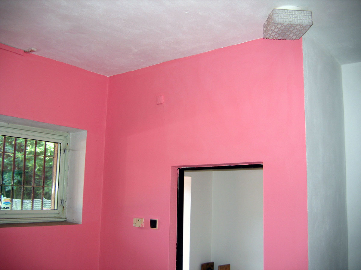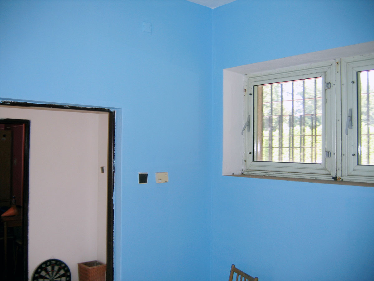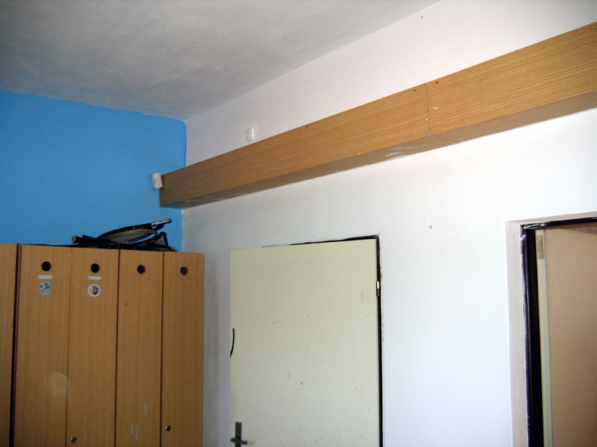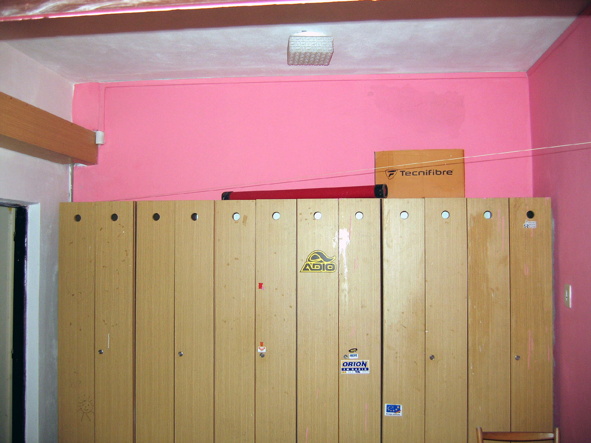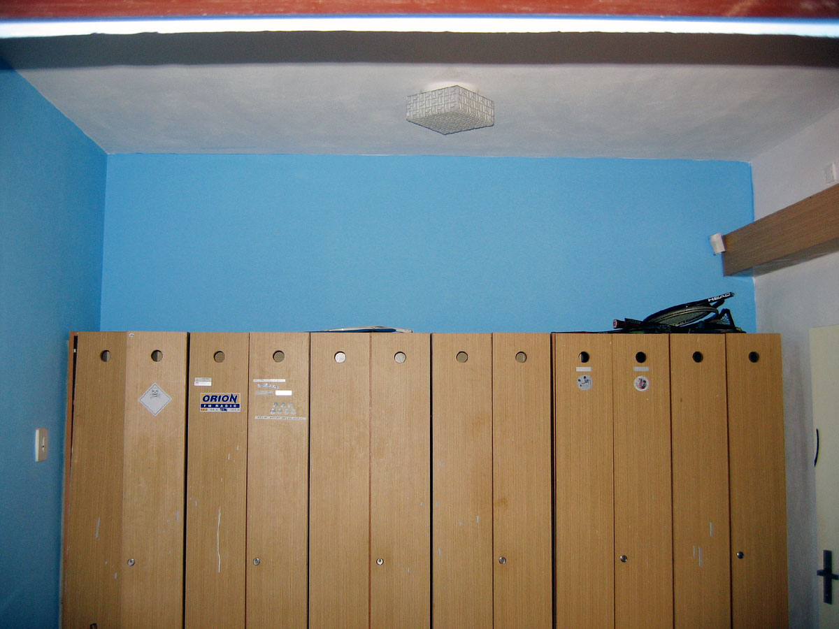 Zatečené a poničené závodní šatny jsme museli samozřejmě vymalovat. Jsou nyní trochu pestřejší. |