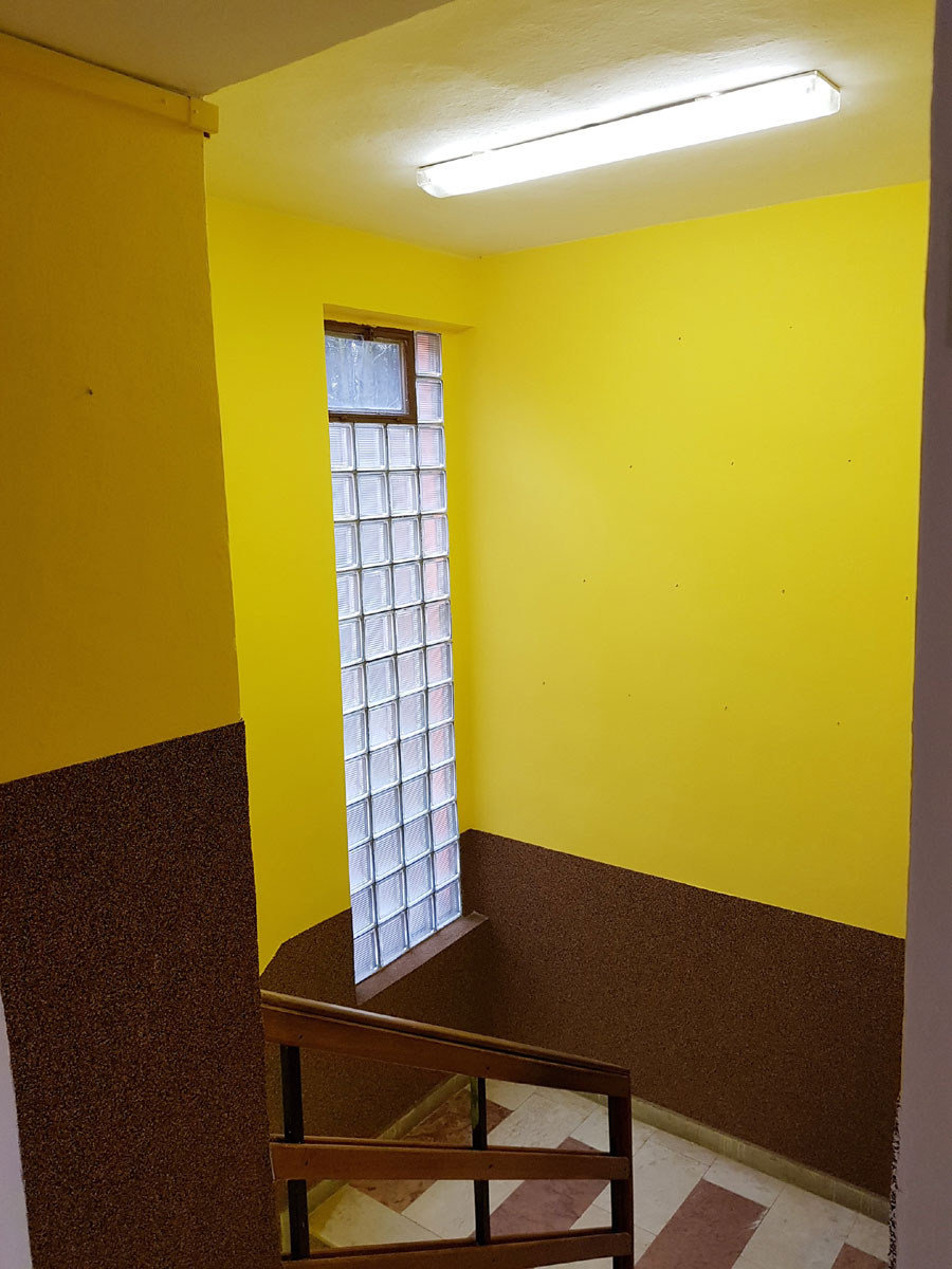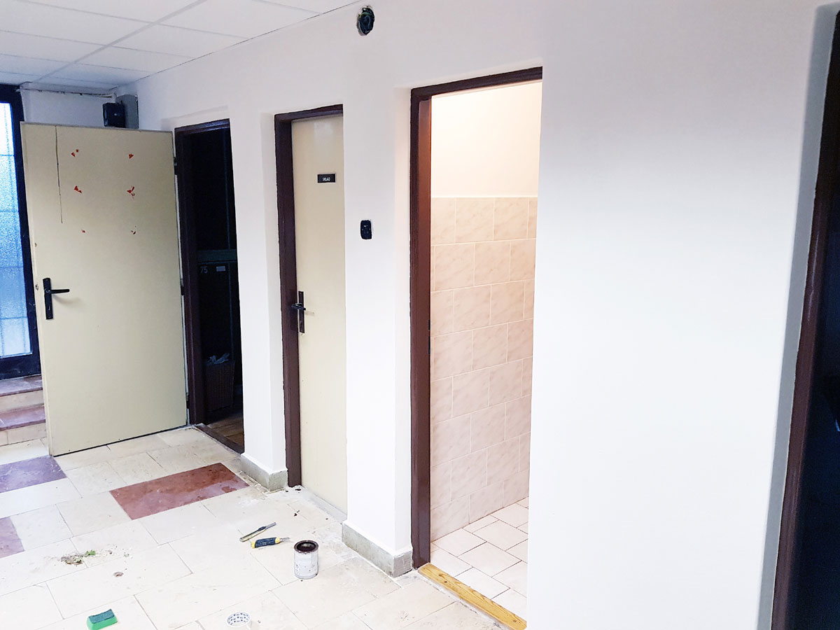 Po rozsáhlé rekonstrukci baru, oken a parapetů, nastala potřeba vymalovat chodby, šatny, kuchyň, schodiště a ještě další místa a také natřít některá zařízení budovy. |