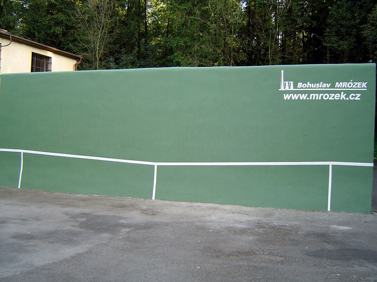 V letošním roce jsme z důvodu dezolátního stavu odrazové zdi přistoupili k její rekonstrukci. Ze zdi byla odstraněna stará omítka, bylo použito pískování, poté byla zeď vyrovnána a znovu namalována. |