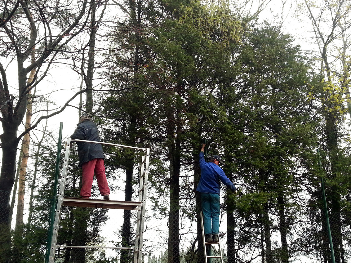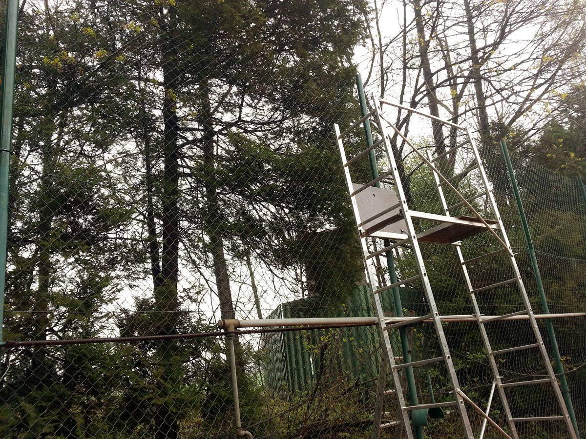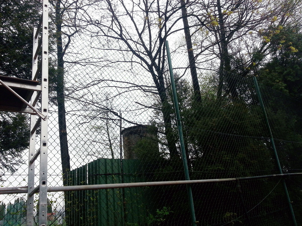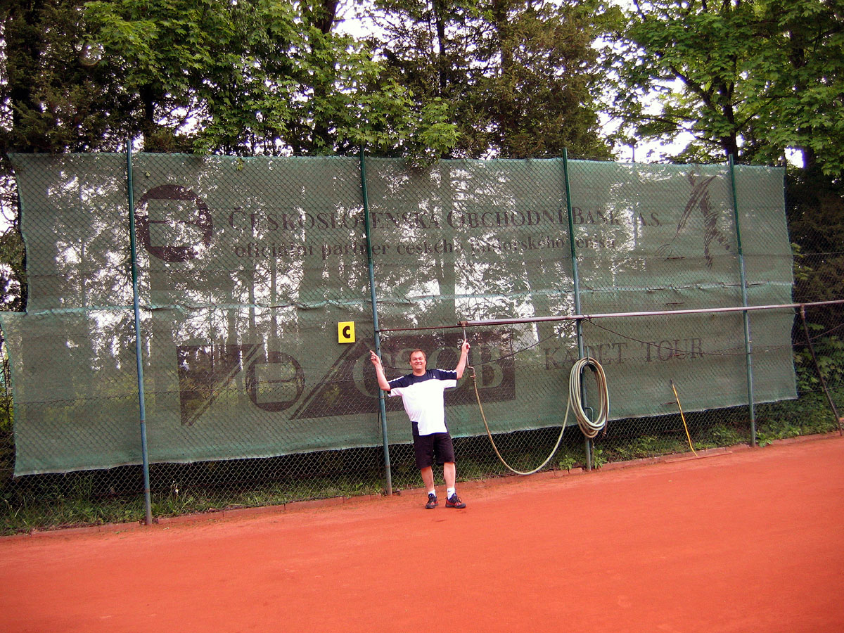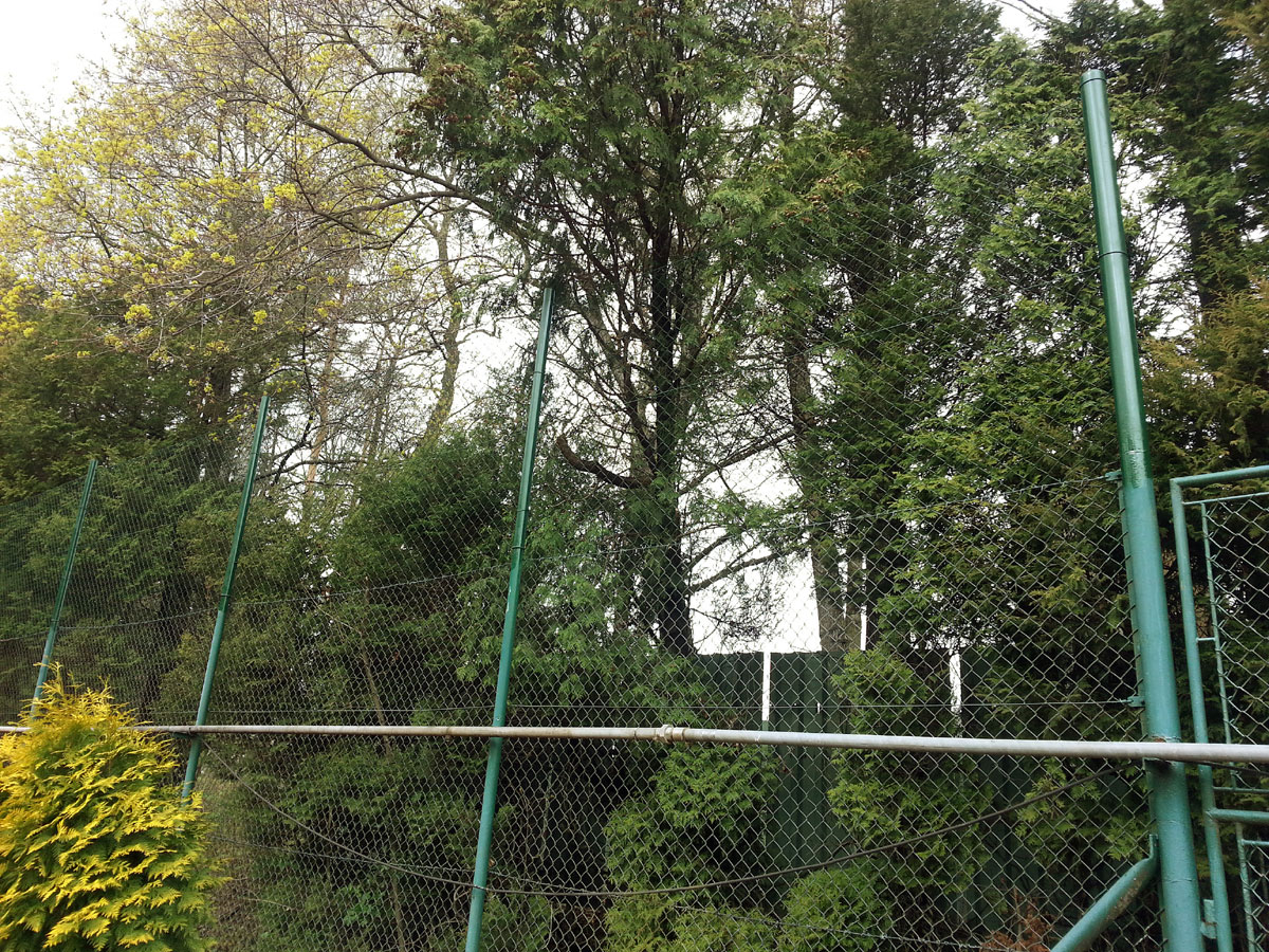 Pro zamezení létání míčků za plot a zlepšení viditelnosti jsme nadstavili plot na centrálním dvorci a napnuli na něm plachty, které zamezily průniku světla přes vysekané části lesa. |