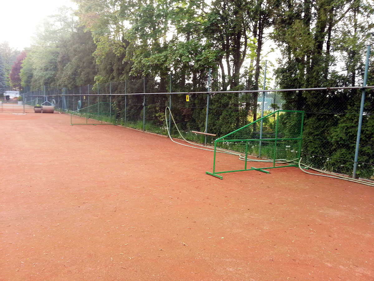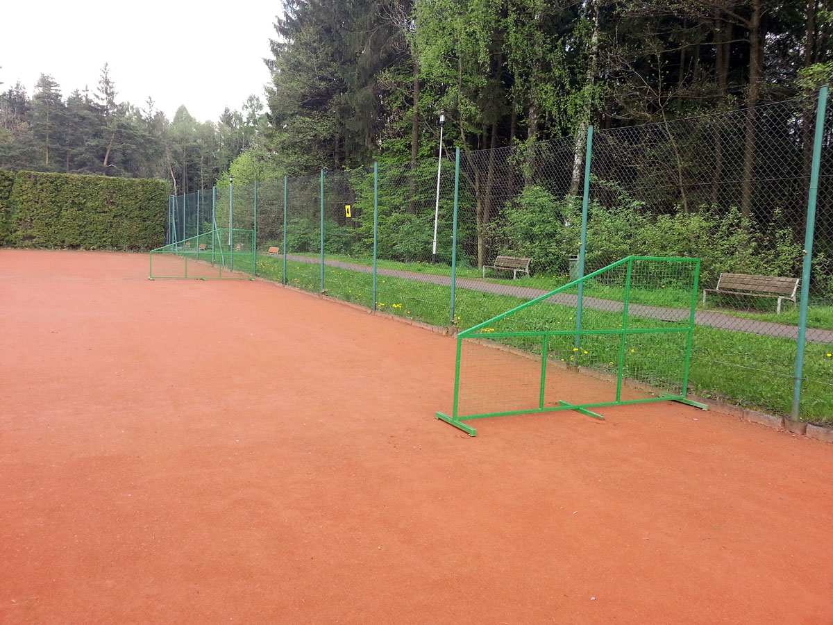 Pro zamezení létání míčku mezi jednotlivými dvorci jsme nechali vyrobit předělovací ploty mezi sousedícími kurty. |
