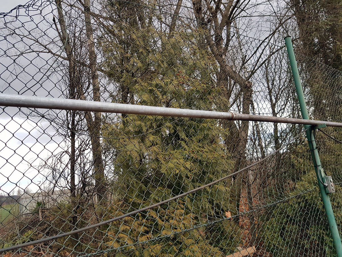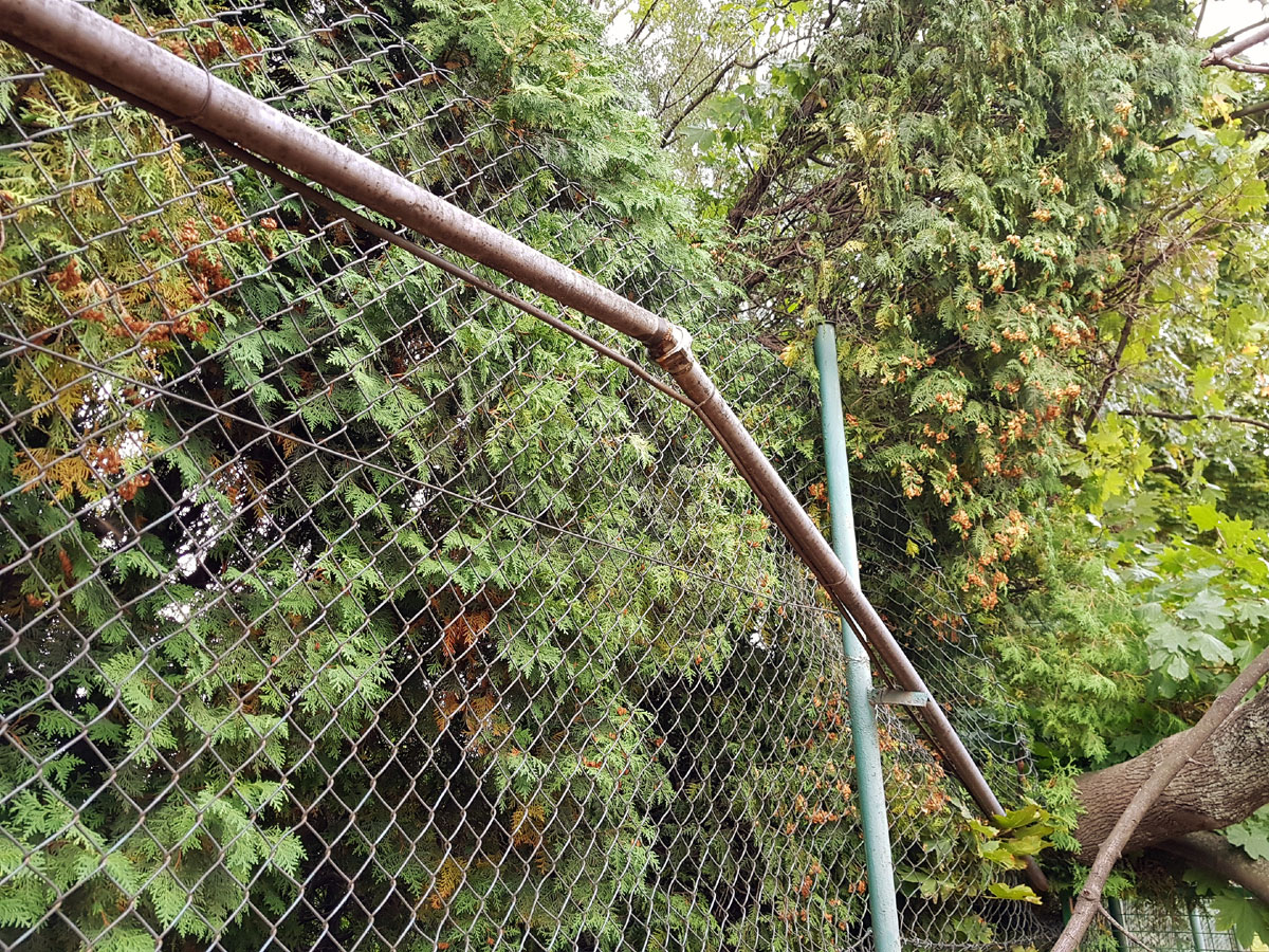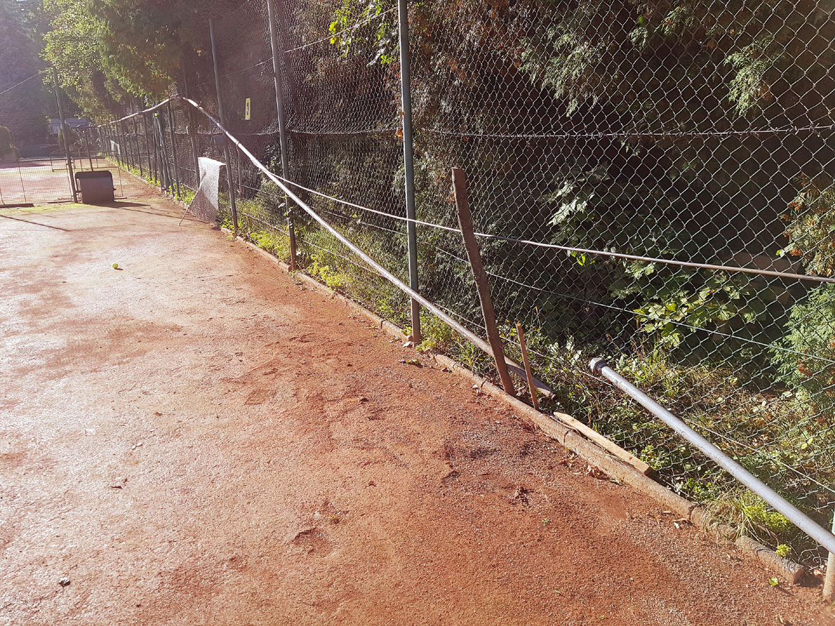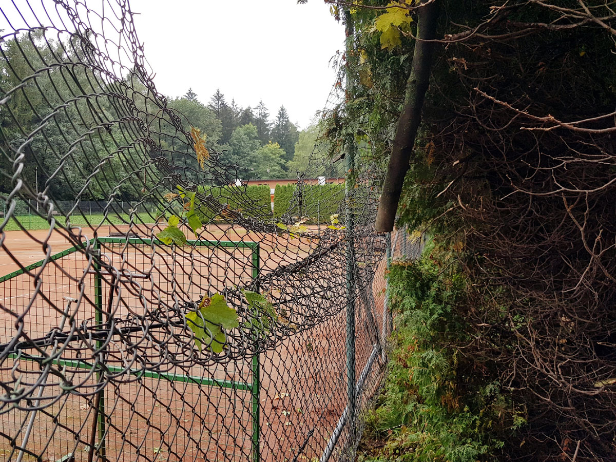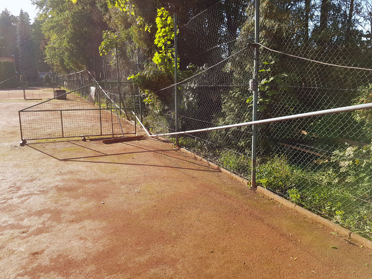 A máme tu další pád stromu. Tentokrát spadl vysoký strom v silném větru 14.09.2017 ze strany hřiště a zničil nám tři pole plotu a také rozvody vody, sloužící na postřik dvorců. Strom jsme nařezali ve složení René Fargač, Aleš Dobesch a správce Zdeněk Sikora. Ještě že při pádu nikdo nebyl na dvorci. Teď už to musíme jen opravit. |