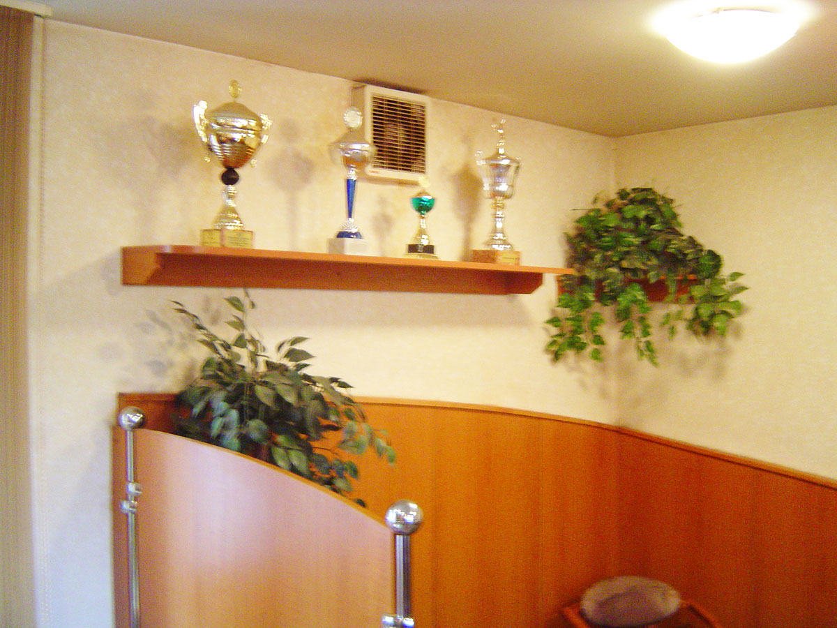 Pro oživení tenisového baru jsme vyrobili nové poličky, na které ukládáme poháry, získané v různých tenisových turnajích.