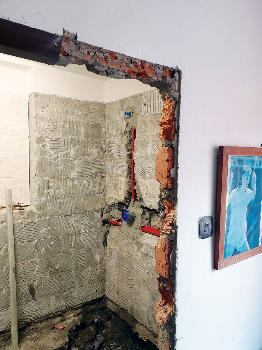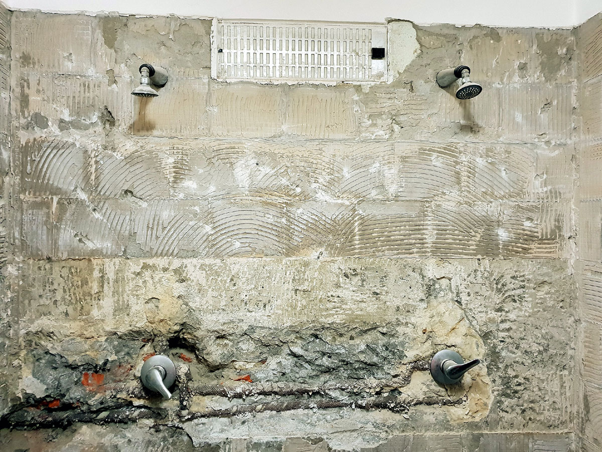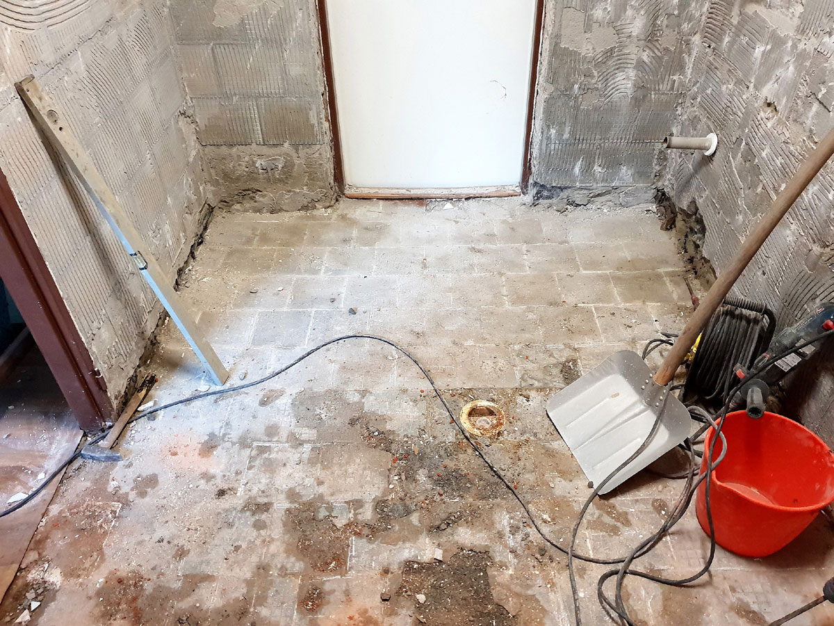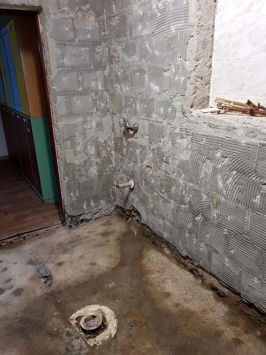 Jako první přišly na řadu bourací práce, kdy bylo třeba sundat staré obklady a dlažby, vybourat podlahu a demontovat staré rozvody vody a zdravotechniku. Fotky z bouracích prací najdete níže. |