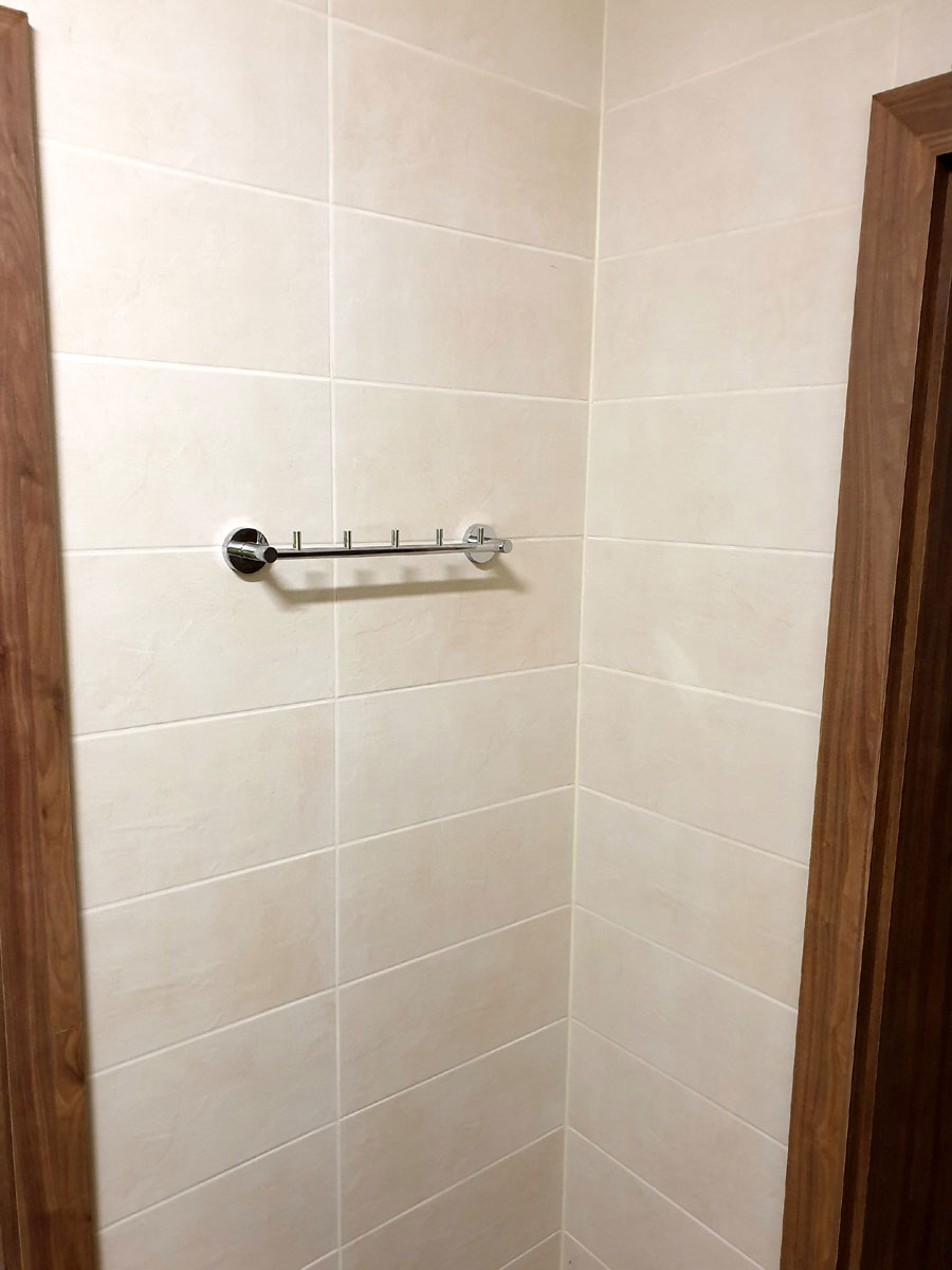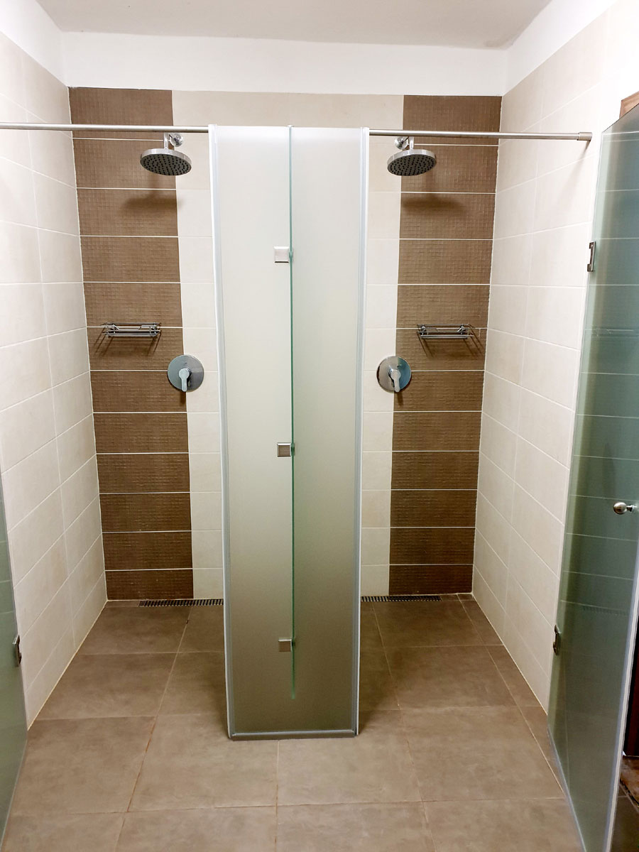 A jsme ve finále. Po montáží posledních kousků držáků na mýdla, zrcadla a věšáků je rekonstrukce sprch u konce. Užijte si nových sprchových boxů v našem areálu. Výsledný vzhled boxů je vidět na přiložených fotkách. |