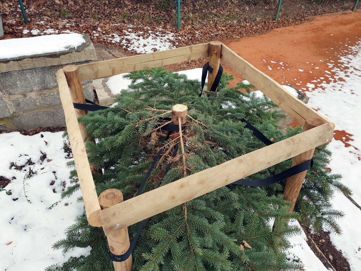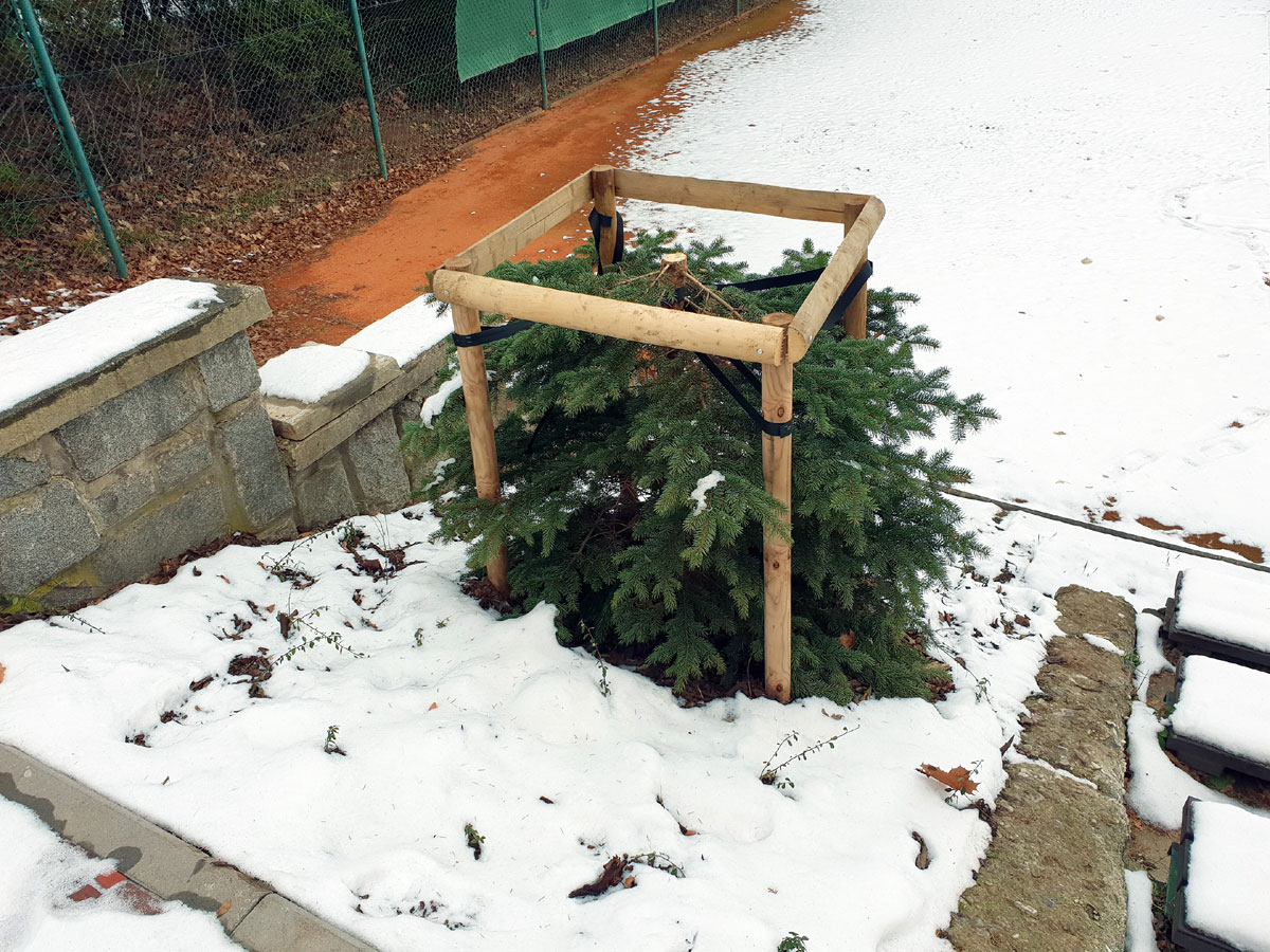 Dne 14.12.2018 jsme měli v areálu nezvanou návštěvu, která si uřezala a odnesla náš nově zasazený stříbrný smrk, který měl být náhradou za spadnutý 40-ti letý strom, který nevydržel nápor vichřice. |