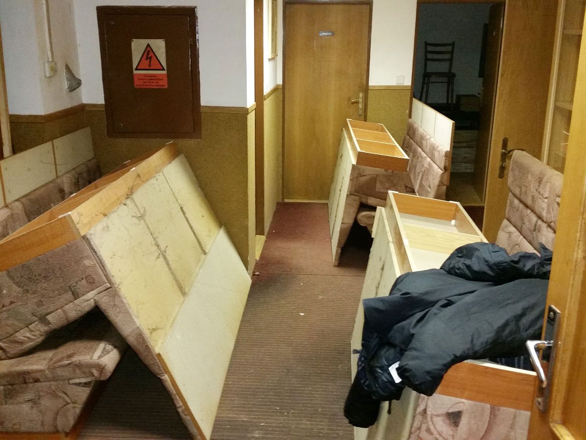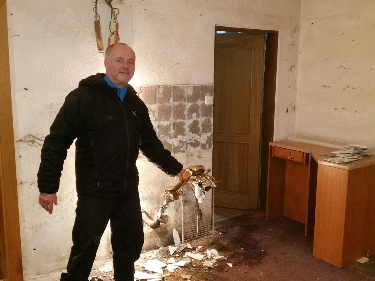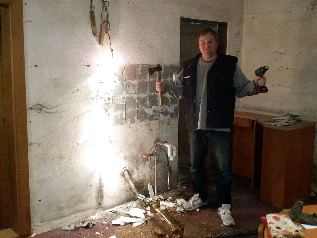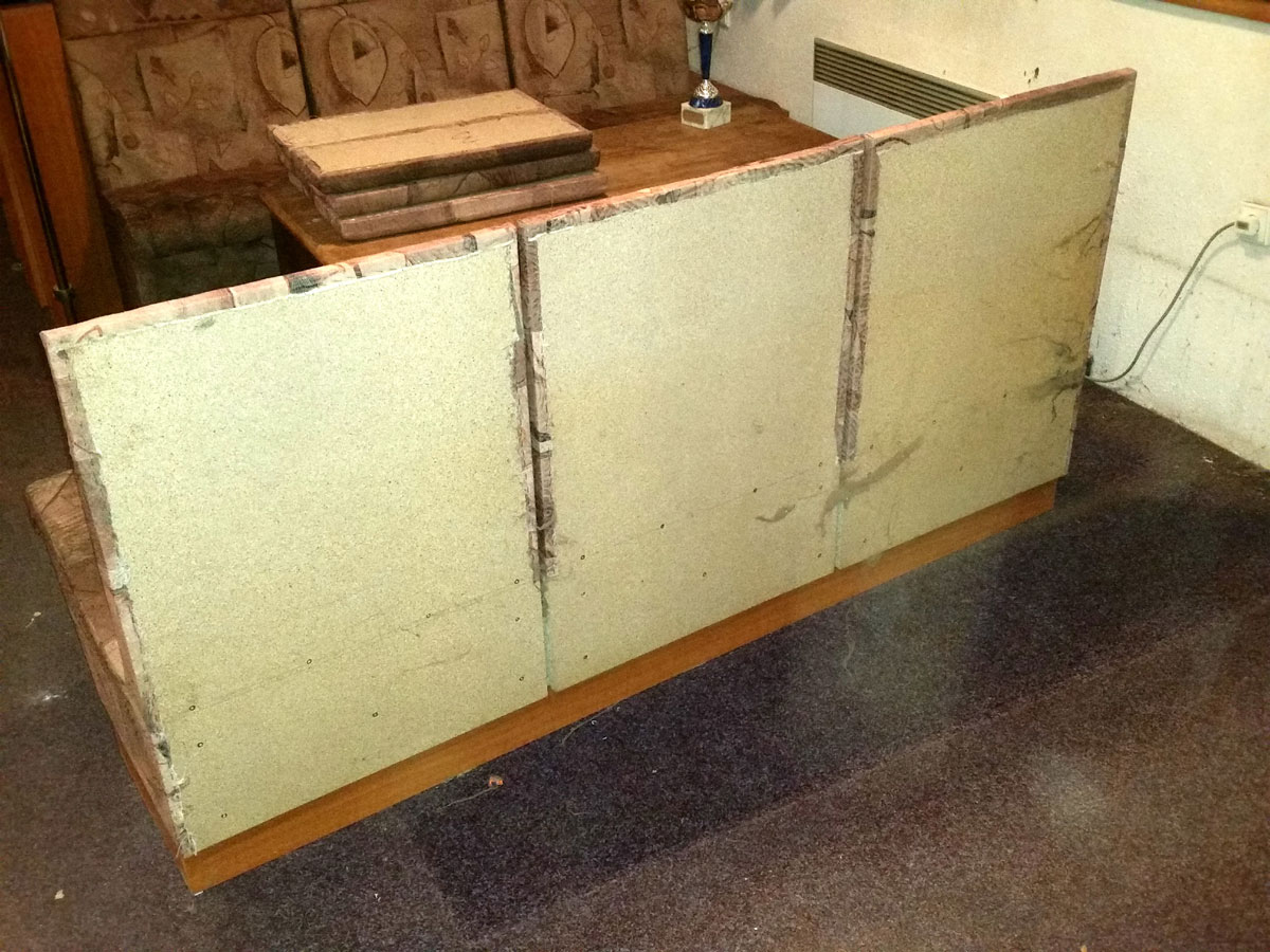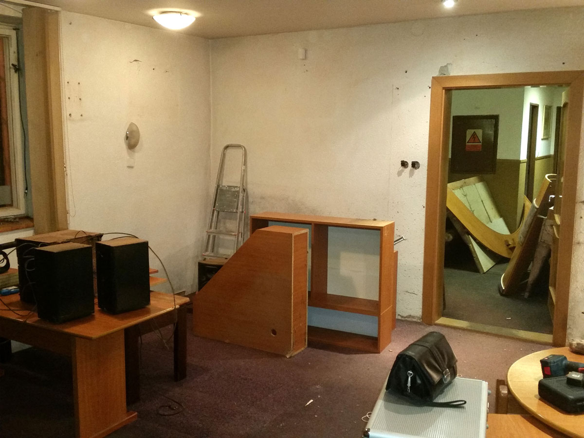 Před začátkem rekonstrukce proběhla samozřejmě demontáž stávajícího zařízení, baru, posezení a koberce. Demontáže se chopili René Fargač a Aleš Dobesch. Za dva dni bylo hotovo. |