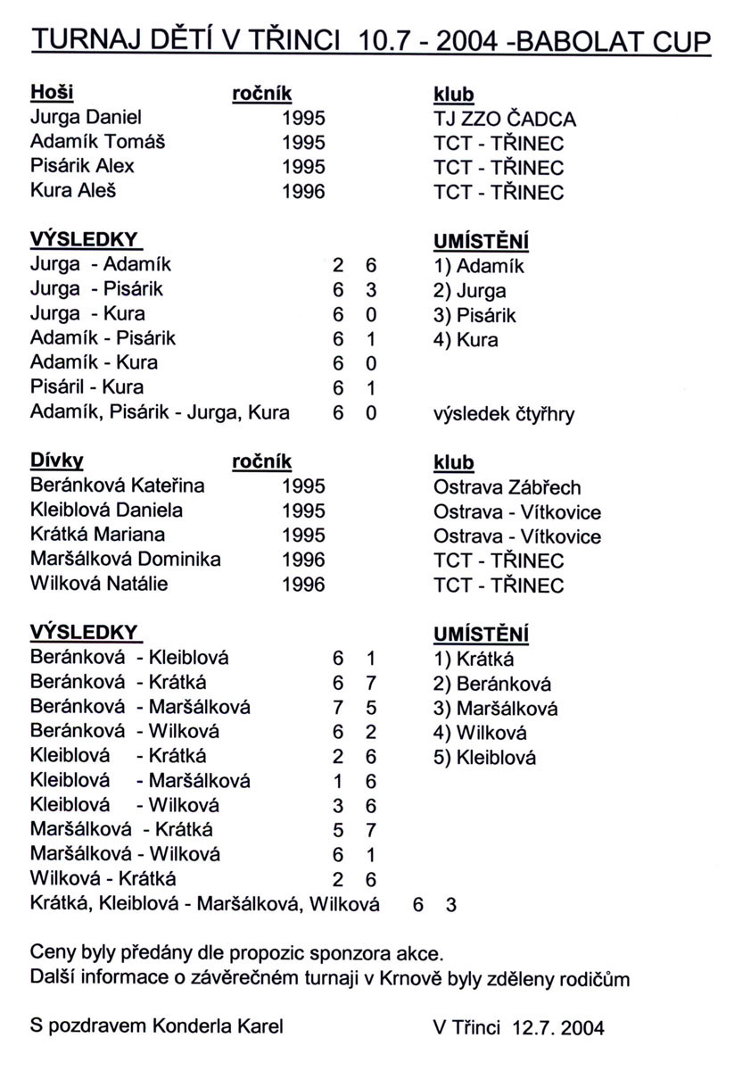 Děti 2004 - Babolat Cup III - výsledky