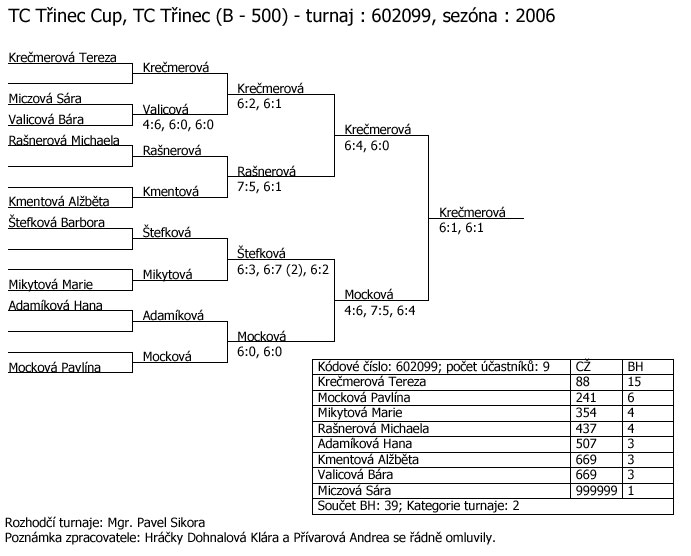 Starší žáci 2006 - TC Třinec Cup - pavouky