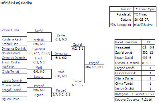 Mladší žáci 2008 - TC Třinec Cup - pavouky