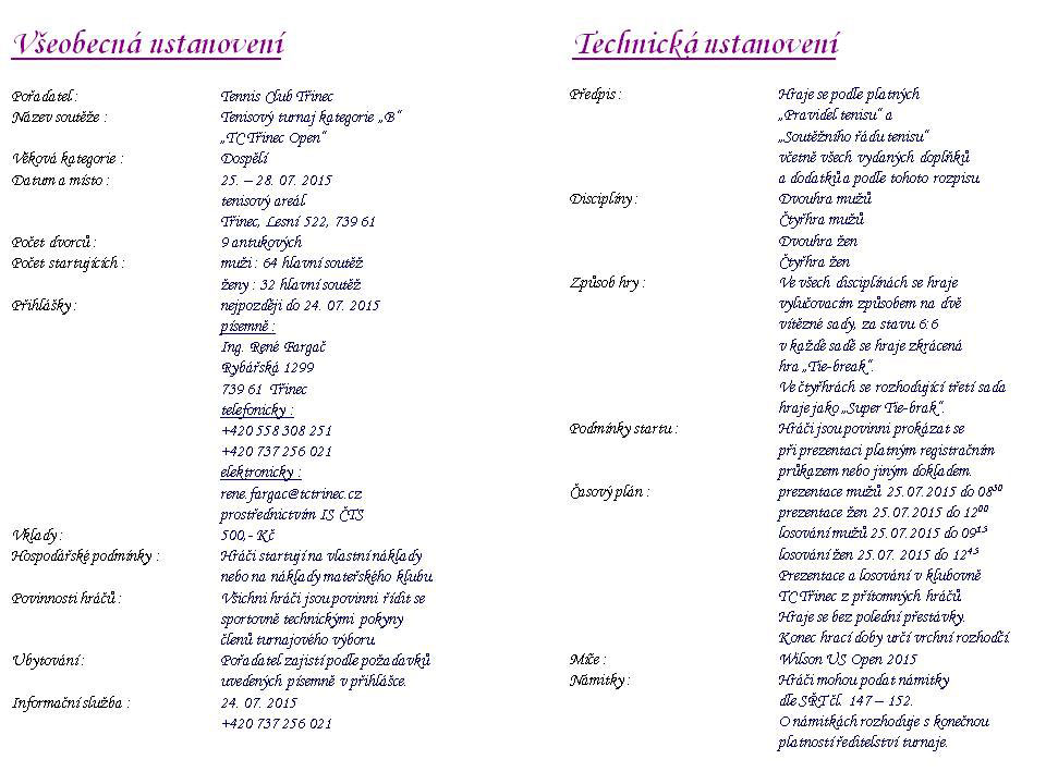 Dospělí 2015 - TC Třinec Open - propozice