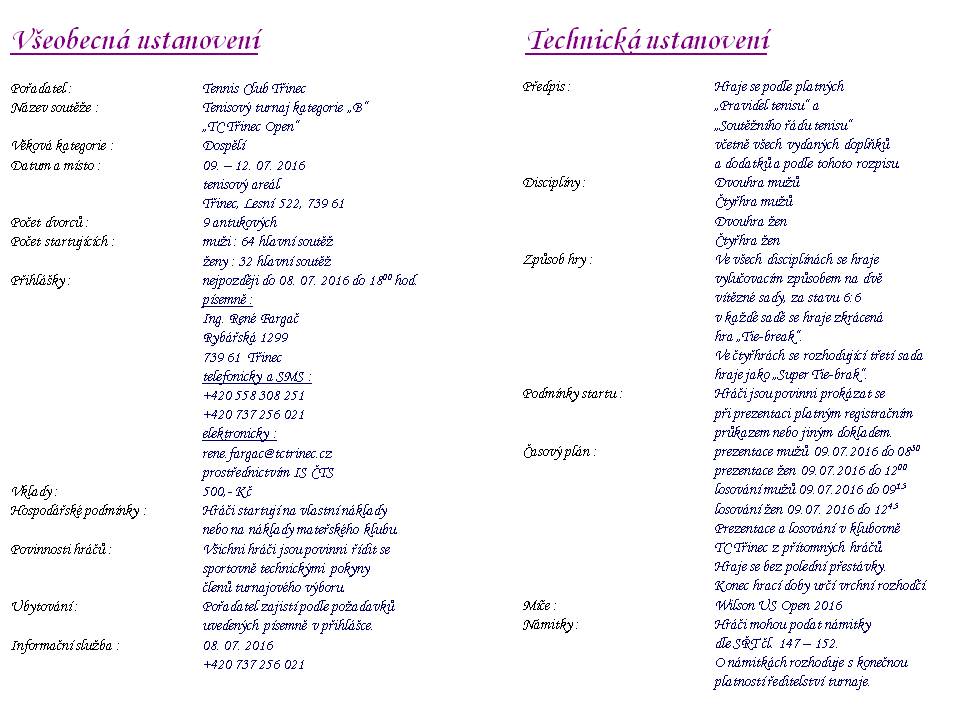 Dospělí 2016 - TC Třinec Open - propozice
