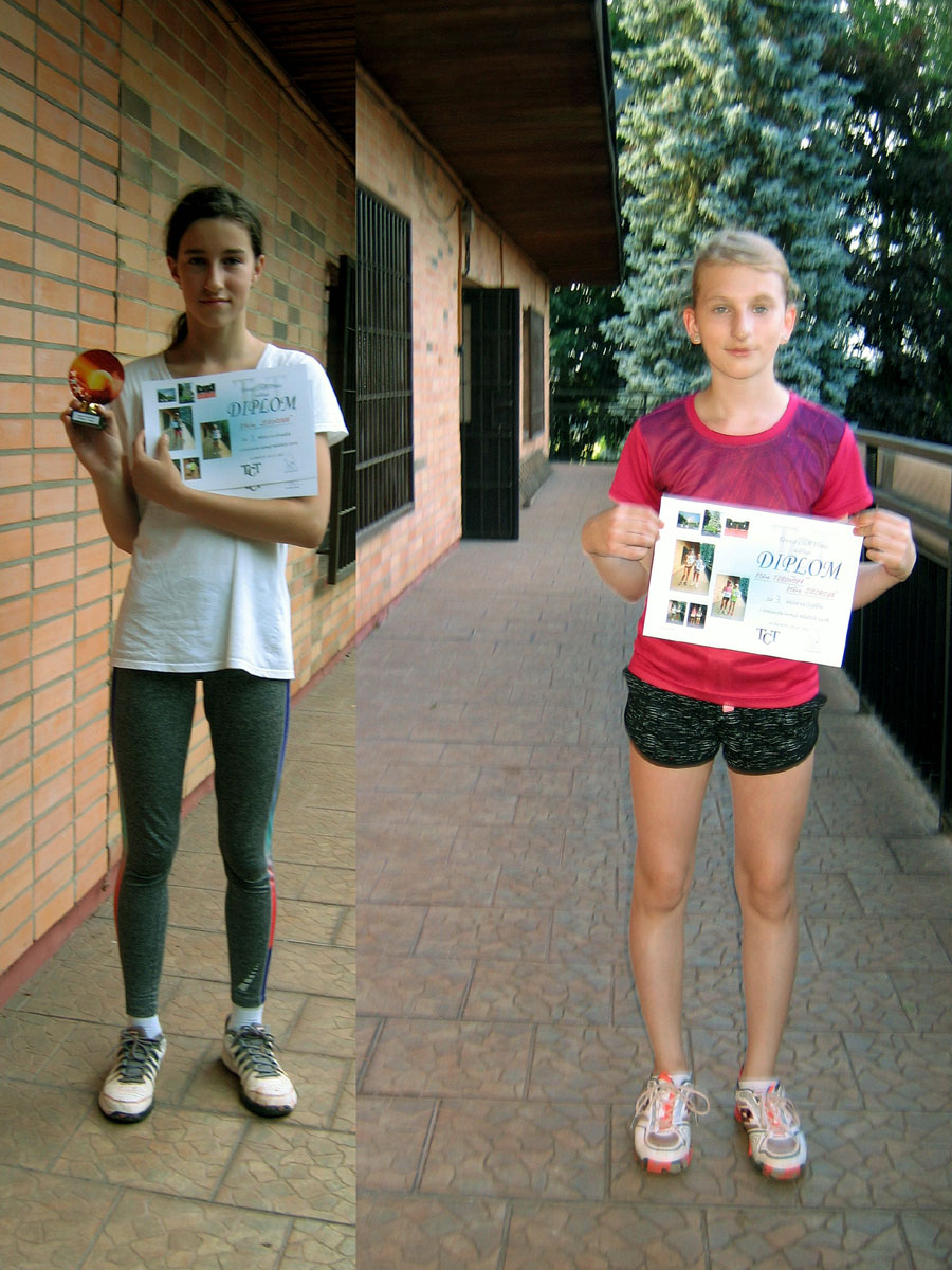 | 1.místo dvouhra mladší žačky : | 2.místo dvouhra mladší žačky : |