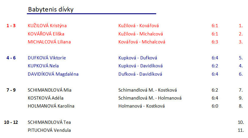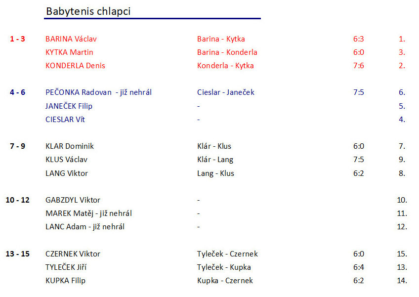 | Konečné pořadí chlapci | Konečné pořadí dívky |