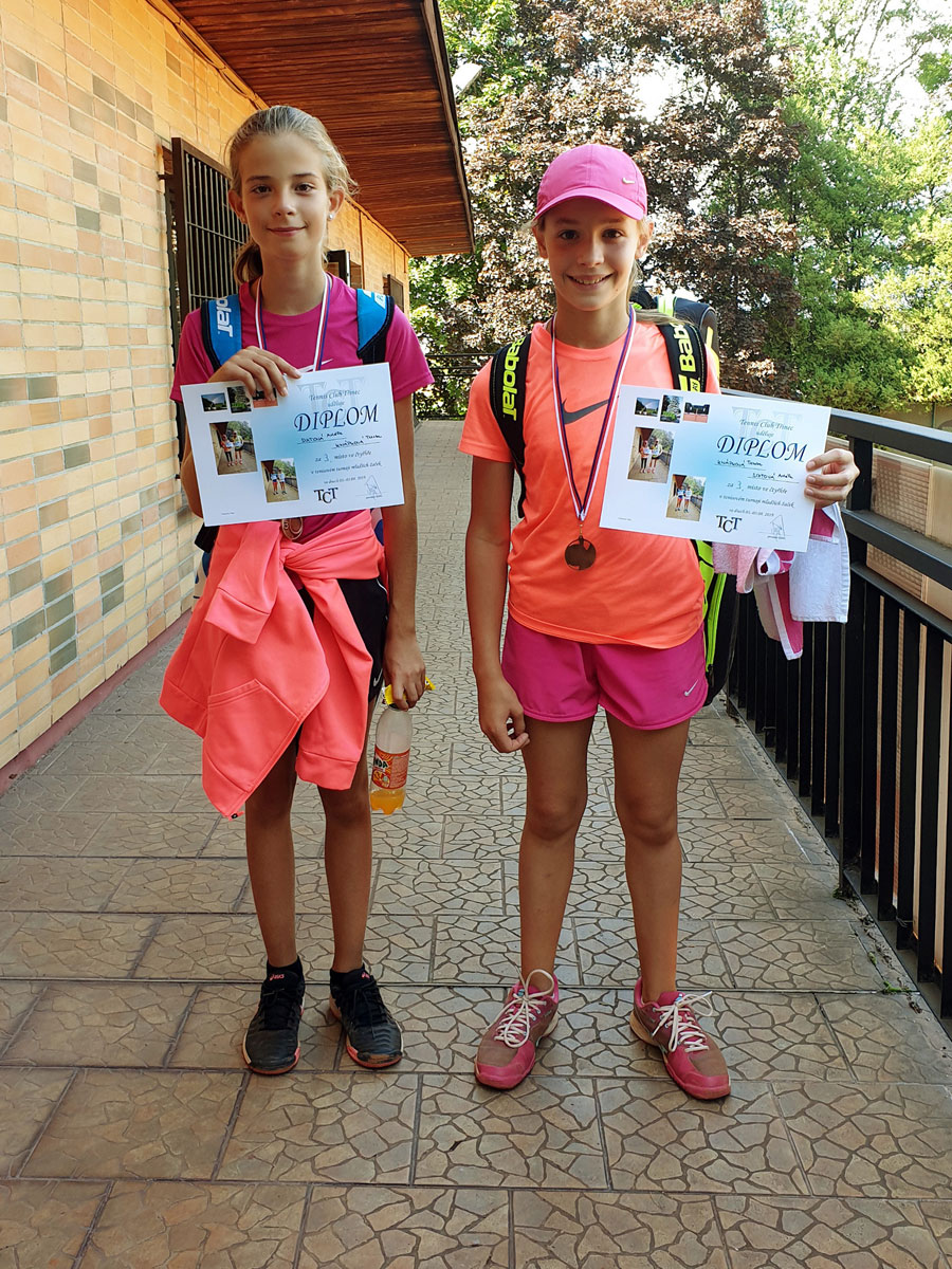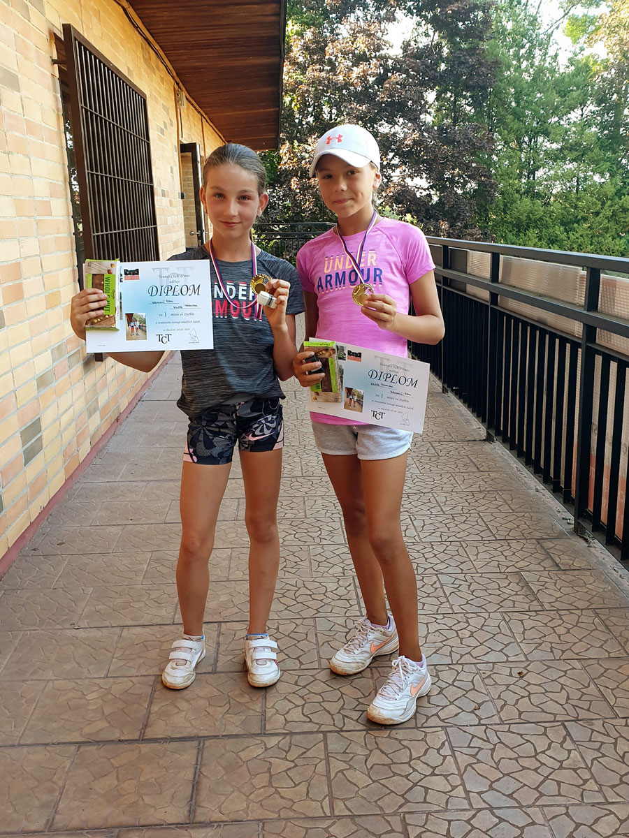 | 1.místo dvouhra mladší žačky : | 2.místo dvouhra mladší žačky : |