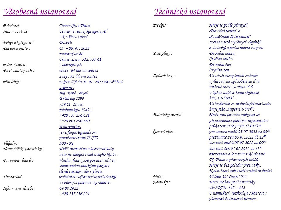 Dospělí 2022 - TC Třinec Open - propozice