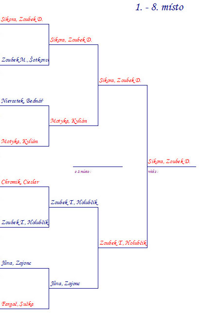 11 dvojic se utkalo ve skupinách a poté v pavouku na jednu sadu. Za celý klub Vám kluci přeji vše nejlepší.